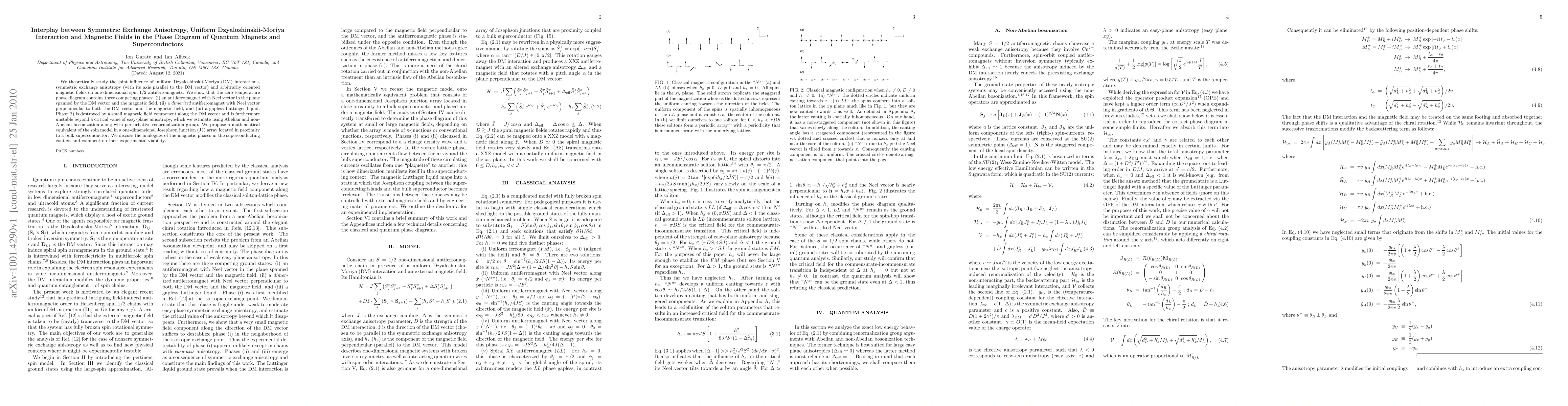 We theoretically study the joint influence of uniform Dzyaloshinskii-Moriya (DM) interactions, symmetric exchange anisotropy (with its axis parallel to the DM vector) and arbitrarily oriented magnetic fields on one-dimensional spin 1/2 antiferromagnets. We show that the zero-temperature phase diagram contains three competing phases: (i) an antiferromagnet with Neel vector in the plane spanned by the DM vector and the magnetic field, (ii) a {\em dimerized} antiferromagnet with Neel vector perpendicular to both the DM vector and the magnetic field, and (iii) a gapless Luttinger liquid. Phase (i) is destroyed by a small magnetic field component along the DM vector and is furthermore unstable beyond a critical value of easy-plane anisotropy, which we estimate using Abelian and non-Abelian bosonization along with perturbative renormalization group. We propose a mathematical equivalent of the spin model in a one-dimensional Josephson junction (JJ) array located in proximity to a bulk superconductor. We discuss the analogues of the magnetic phases in the superconducting context and comment on their experimental viability.