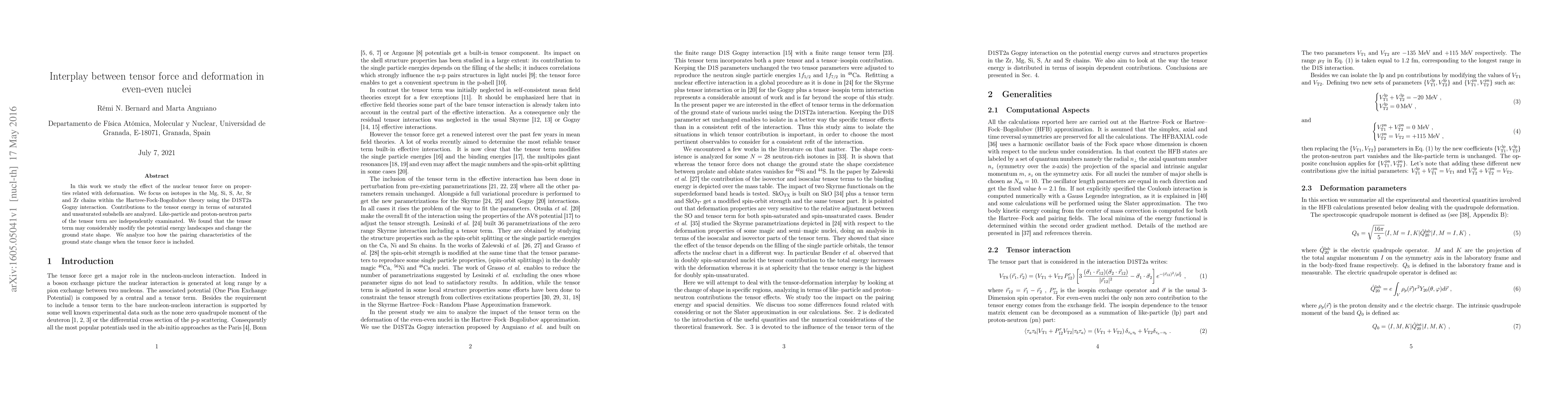 In this work we study the effect of the nuclear tensor force on properties related with deformation. We focus on isotopes in the Mg, Si, S, Ar, Sr and Zr chains within the Hartree-Fock-Bogoliubov theory using the D1ST2a Gogny interaction. Contributions to the tensor energy in terms of saturated and unsaturated subshells are analyzed. Like-particle and proton-neutron parts of the tensor term are independently examinated. We found that the tensor term may considerably modify the potential energy landscapes and change the ground state shape. We analyze too how the pairing characteristics of the ground state change when the tensor force is included.