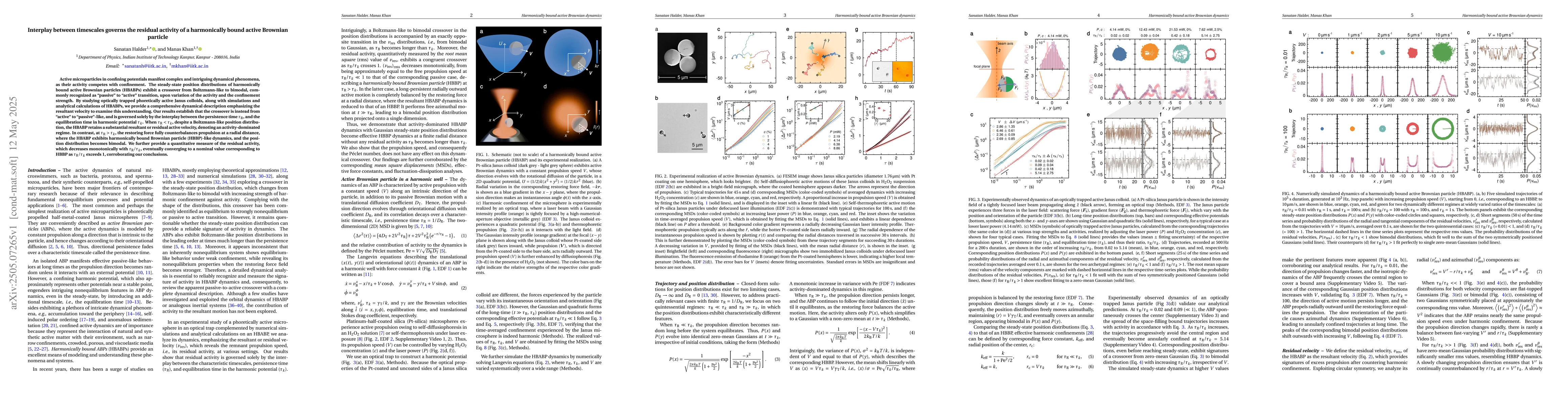 Research on active Brownian particles found that their activity is governed by a balance between persistence time and equilibration time in harmonic potential, resulting in a crossover from active to passive-like behavior.