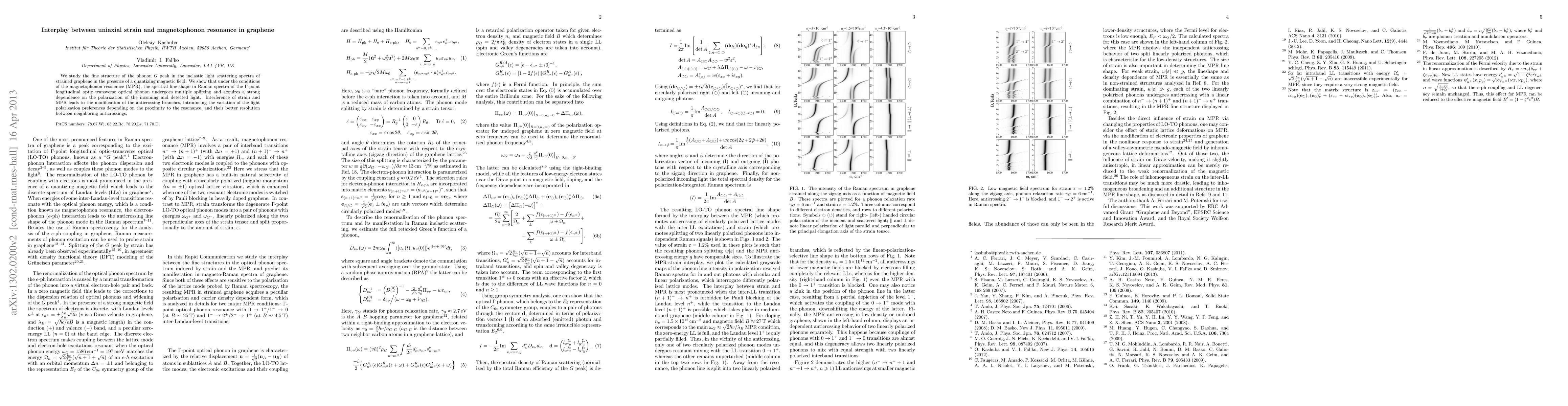 This paper investigates how uniaxial strain and magnetophonon resonance affect the phonon G peak in graphene's Raman spectra. It reveals that under magnetophonon resonance, the Raman spectral line shape shows multiple splitting and polarization-dependent behavior, with strain and resonance interference enhancing the resolution of anticrossing branches.