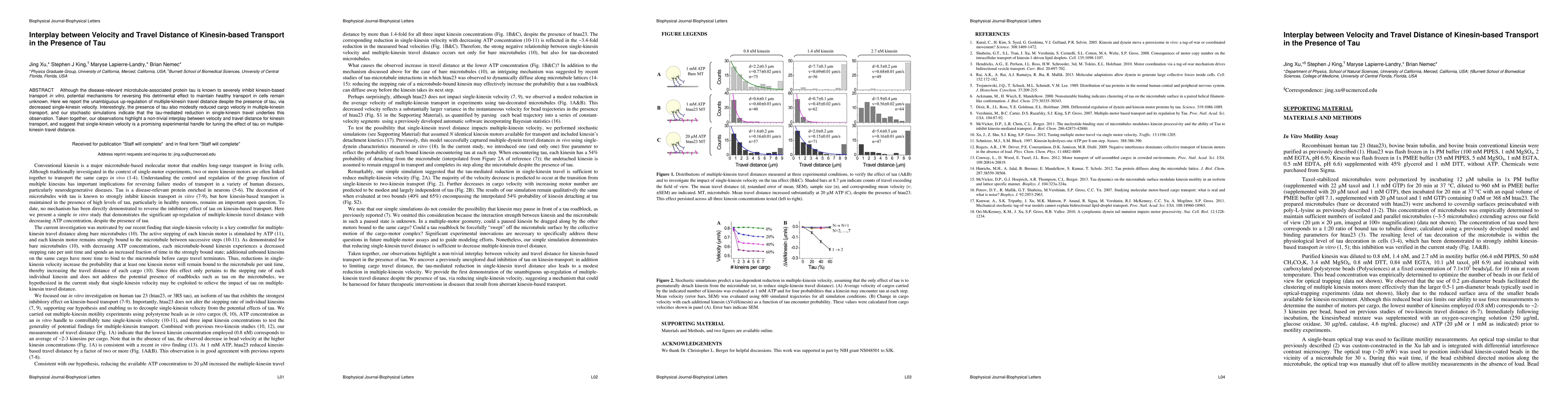 This study reveals that tau, a protein linked to neurodegenerative diseases, inhibits kinesin-based transport by reducing single-kinesin velocity, yet it paradoxically increases the overall travel distance of multiple kinesins. The findings suggest that manipulating single-kinesin velocity could be a strategy to mitigate tau's negative impact on cellular transport.