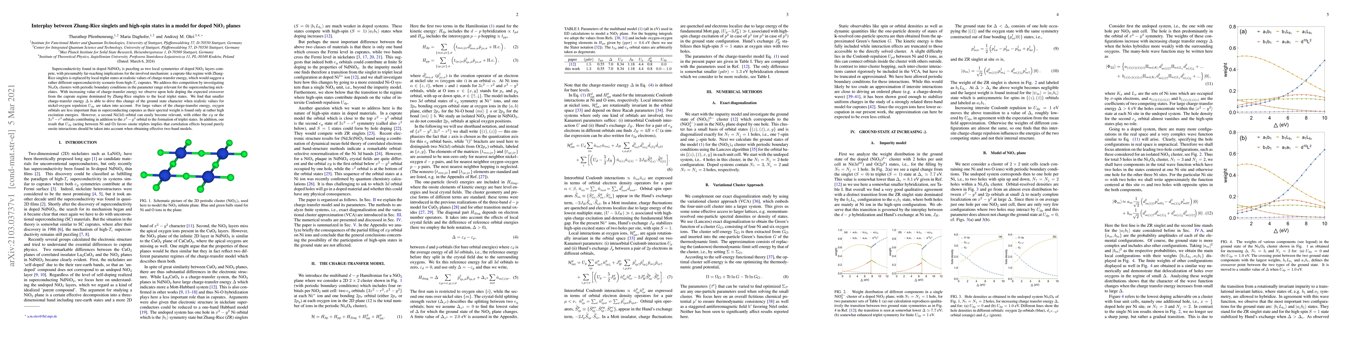 This paper investigates the competition between Zhang-Rice singlets and high-spin triplet states in doped NiO$_2$ planes, finding that lower charge-transfer energy drives a shift from singlet to triplet ground states. It emphasizes the need to consider correlation effects beyond onsite interactions in effective two-band models for understanding superconductivity in nickelates.