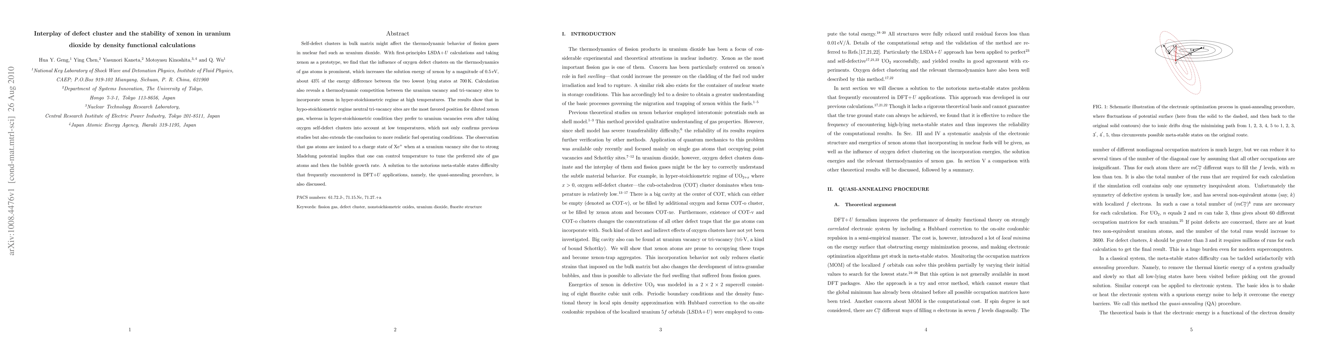 This study uses LSDA+U density functional calculations to investigate the impact of oxygen defect clusters on the stability of xenon in uranium dioxide. The findings show that oxygen defect clusters significantly influence xenon's thermodynamic behavior, increasing its solution energy by 0.5 eV, and suggest that temperature can control the preferred site for xenon incorporation, influencing bubble growth rates.