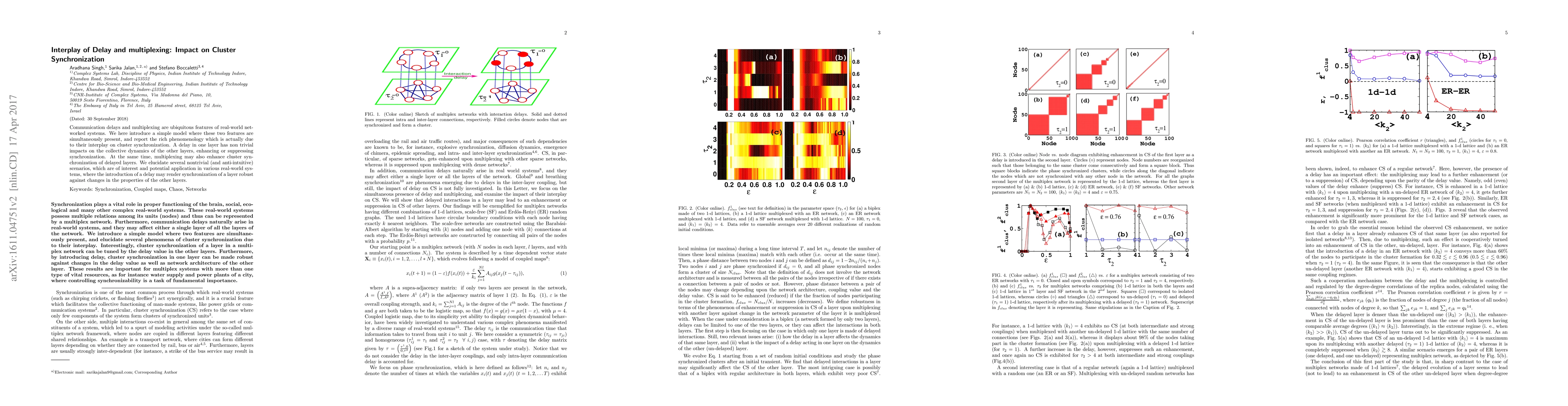 This paper explores how communication delays and multiplexing interact in networked systems to influence cluster synchronization. It reveals that delays in one layer can significantly affect the dynamics of other layers, either enhancing or suppressing synchronization, while multiplexing can bolster synchronization in delayed layers.