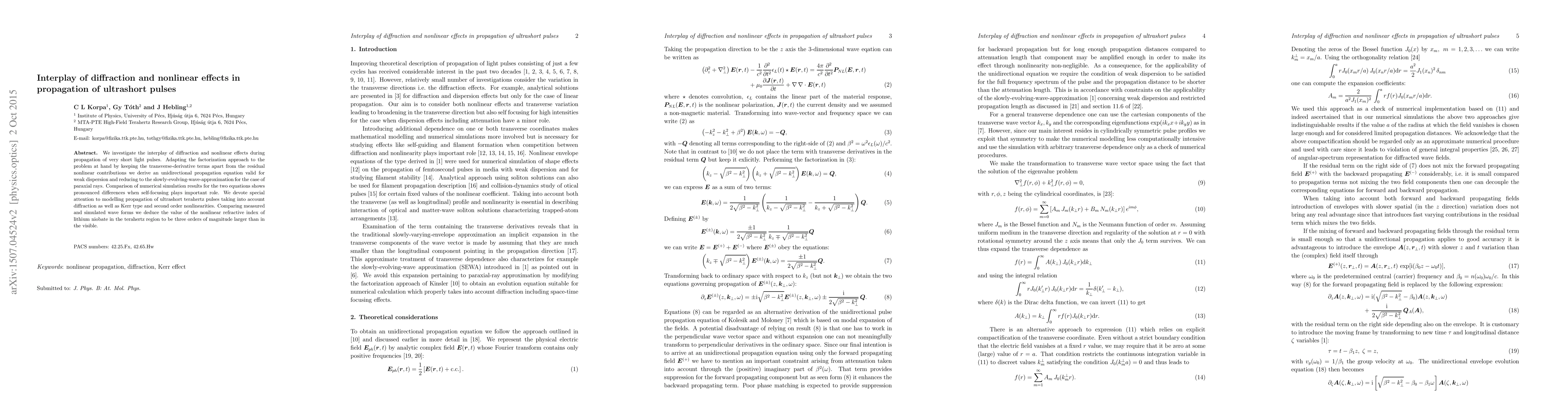 Researchers investigate how diffraction and nonlinear effects affect ultrashort light pulses, finding that self-focusing plays a significant role in certain cases and revealing the nonlinear refractive index of lithium niobate to be 3 orders of magnitude larger than expected.