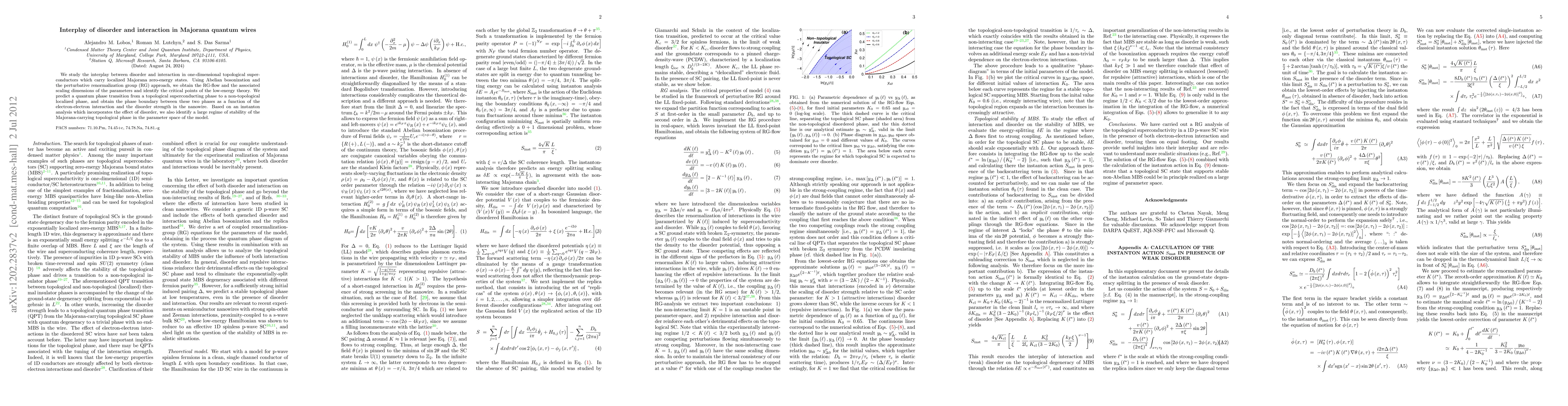 This paper investigates the effects of disorder and electron-electron interactions on one-dimensional topological superconductors with Majorana zero-energy states. Using Abelian bosonization and RG analysis, the authors predict a quantum phase transition from a topological to a non-topological phase, identifying the phase boundary influenced by interaction and disorder strength, and reveal a stable region for the topological phase through instanton analysis.