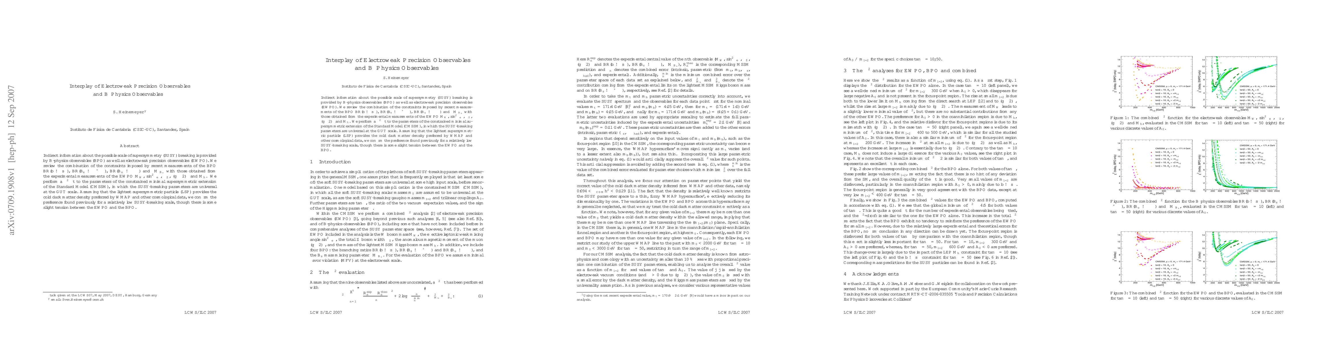 This paper reviews the interplay between B physics observables and electroweak precision observables to infer the scale of supersymmetry breaking. It combines recent measurements of B meson decays with experimental electroweak data, and finds a preference for a relatively low SUSY-breaking scale, though slight tension remains between the two sets of measurements.