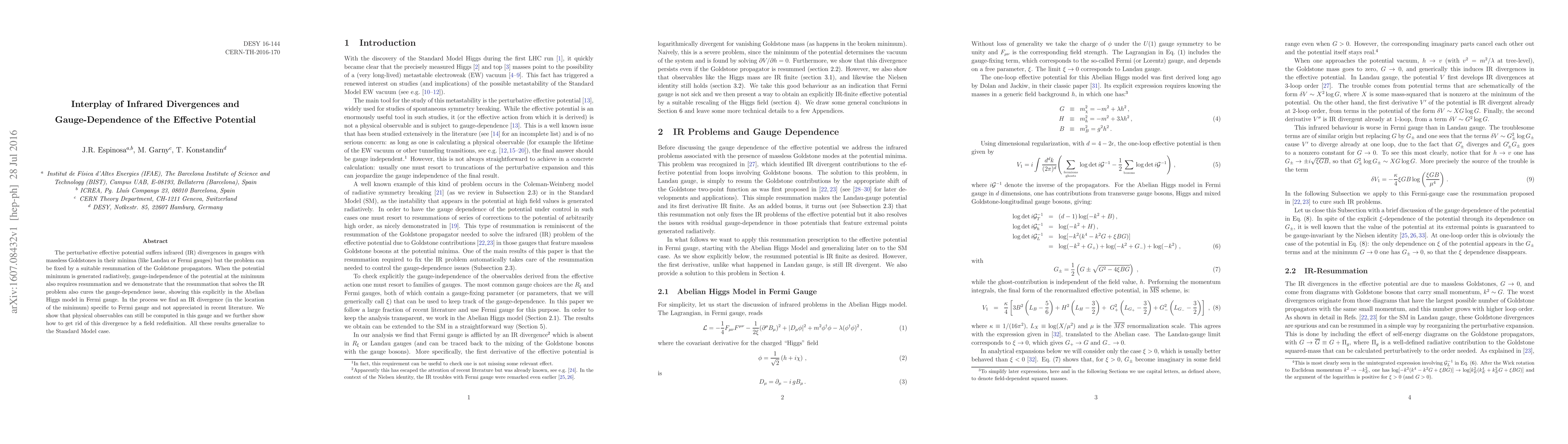 Summary: This paper addresses infrared divergences in the perturbative effective potential in gauges with massless Goldstones, resolving these through Goldstone resummation. It demonstrates that the same resummation technique resolves gauge-dependence issues, exemplified in the Abelian Higgs model in Fermi gauge, and highlights a specific IR divergence in this gauge. The paper also shows how to eliminate this divergence via field redefinition and generalizes these findings to the Standard Model.