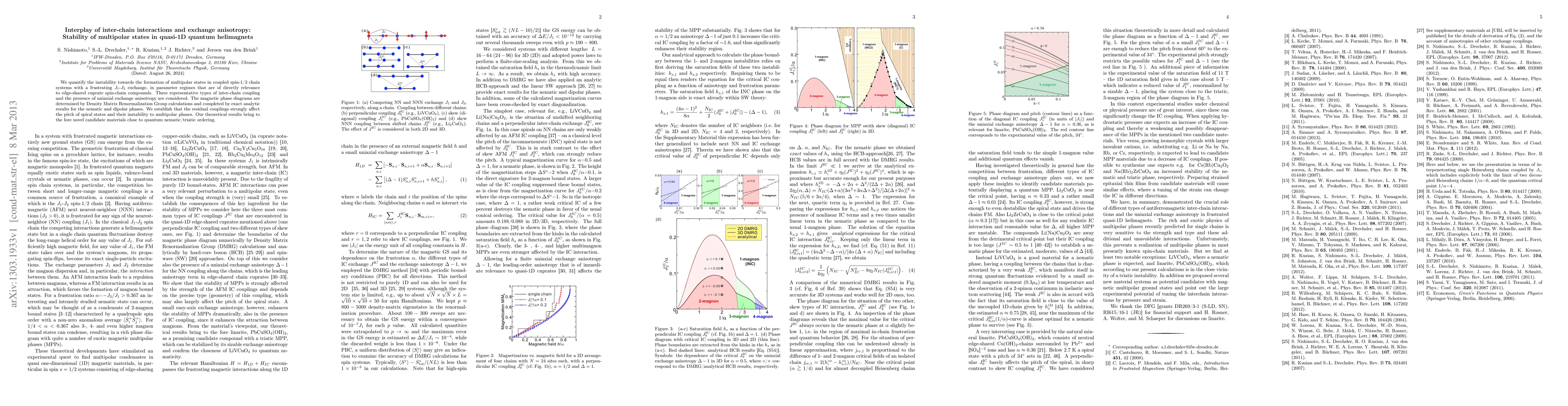 Researchers studied how different inter-chain interactions and anisotropy affect stability in quantum helimagnets, a type of material that can exhibit unusual magnetic properties, and found that certain materials may be close to ordering into unique phases.