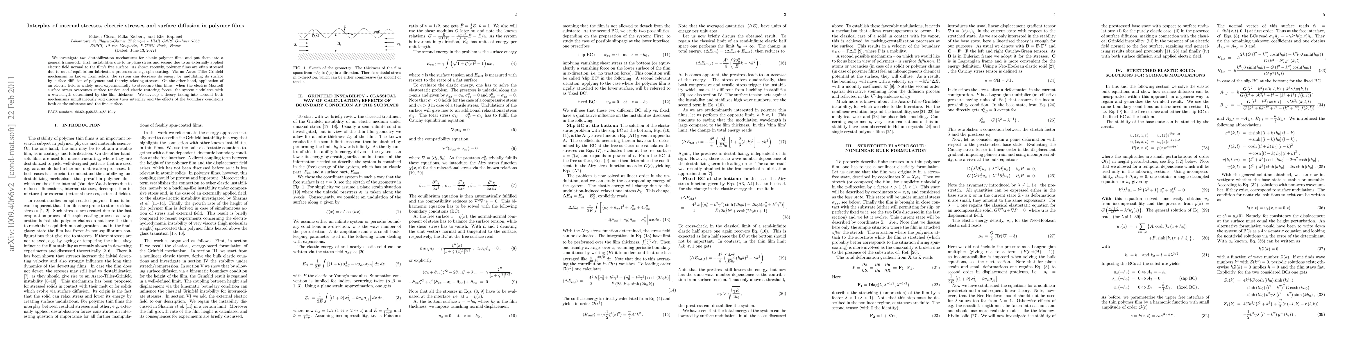 We investigate two destabilization mechanisms for elastic polymer films and put them into a general framework: first, instabilities due to in-plane stress and second due to an externally applied electric field normal to the film's free surface. As shown recently, polymer films are often stressed due to out-of-equilibrium fabrication processes as e.g. spin coating. Via an Asaro-Tiller-Grinfeld mechanism as known from solids, the system can decrease its energy by undulating its surface by surface diffusion of polymers and thereby relaxing stresses. On the other hand, application of an electric field is widely used experimentally to structure thin films: when the electric Maxwell surface stress overcomes surface tension and elastic restoring forces, the system undulates with a wavelength determined by the film thickness. We develop a theory taking into account both mechanisms simultaneously and discuss their interplay and the effects of the boundary conditions both at the substrate and the free surface.
