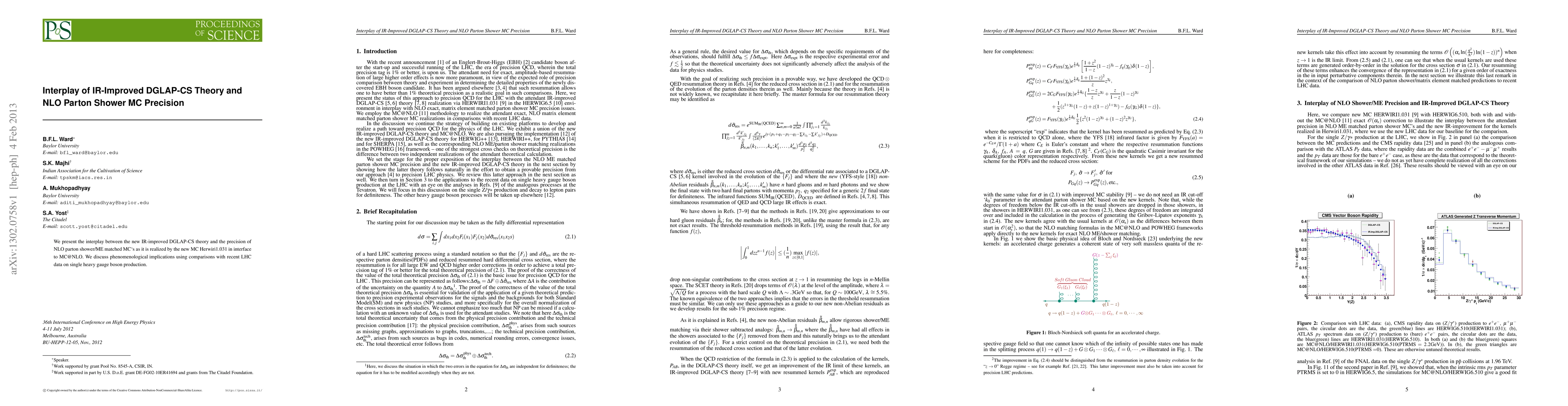 This paper explores the impact of an IR-improved DGLAP-CS theory on precision in NLO parton shower/MC simulations, using recent LHC data for single heavy gauge boson production.