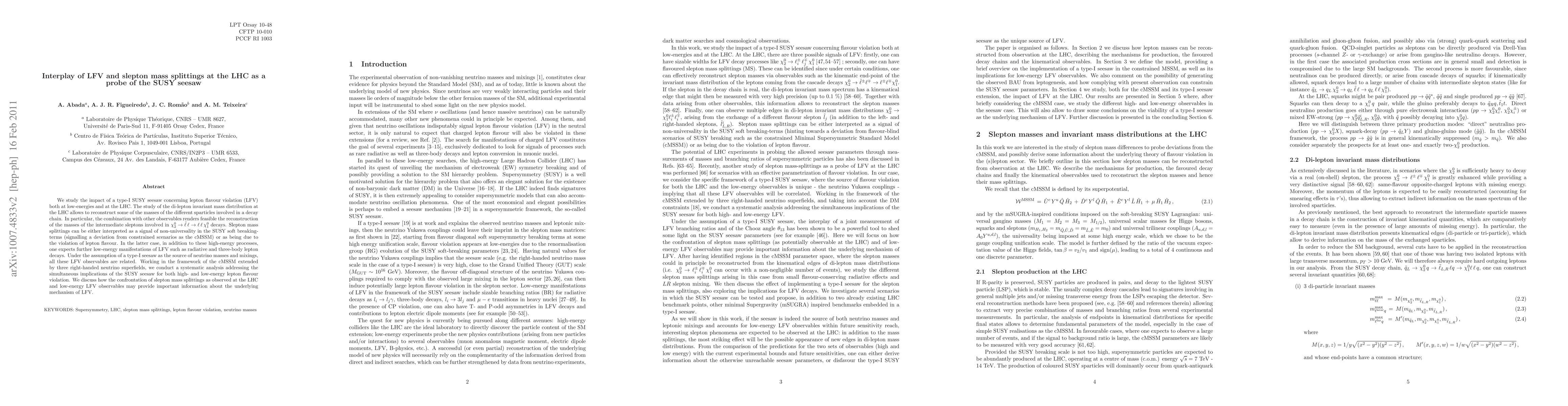 This paper investigates the interplay between lepton flavour violation (LFV) at low-energies and at the LHC within the context of a type-I SUSY seesaw. It explores how LHC di-lepton invariant mass distributions can reveal slepton masses, providing insights into the underlying SUSY seesaw mechanism and its implications for both high-energy and low-energy LFV phenomena.