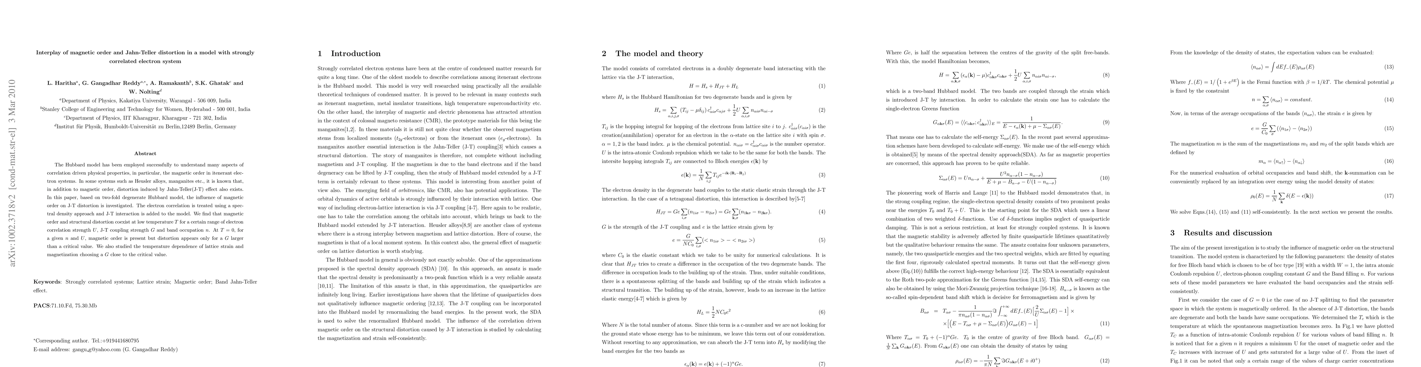 Researchers investigate how magnetic order affects Jahn-Teller distortion in a strongly correlated electron system using the Hubbard model, finding that they coexist at low temperatures for certain ranges of electron correlation strength and coupling constants.