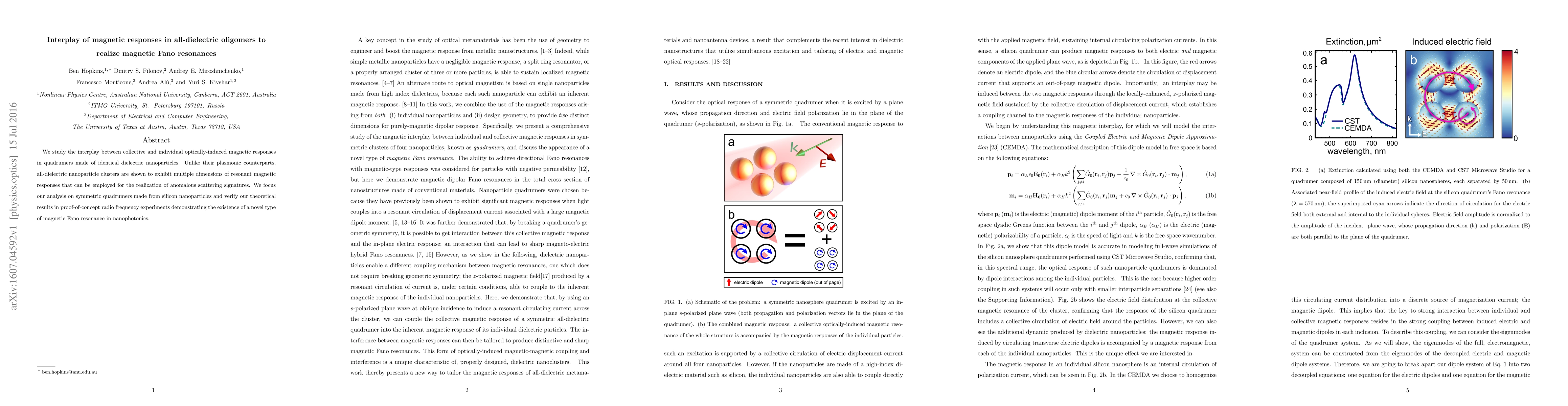 We study the interplay between collective and individual optically-induced magnetic responses in quadrumers made of identical dielectric nanoparticles. Unlike their plasmonic counterparts, all-dielectric nanoparticle clusters are shown to exhibit multiple dimensions of resonant magnetic responses that can be employed for the realization of anomalous scattering signatures. We focus our analysis on symmetric quadrumers made from silicon nanoparticles and verify our theoretical results in proof-of-concept radio frequency experiments demonstrating the existence of a novel type of magnetic Fano resonance in nanophotonics.
