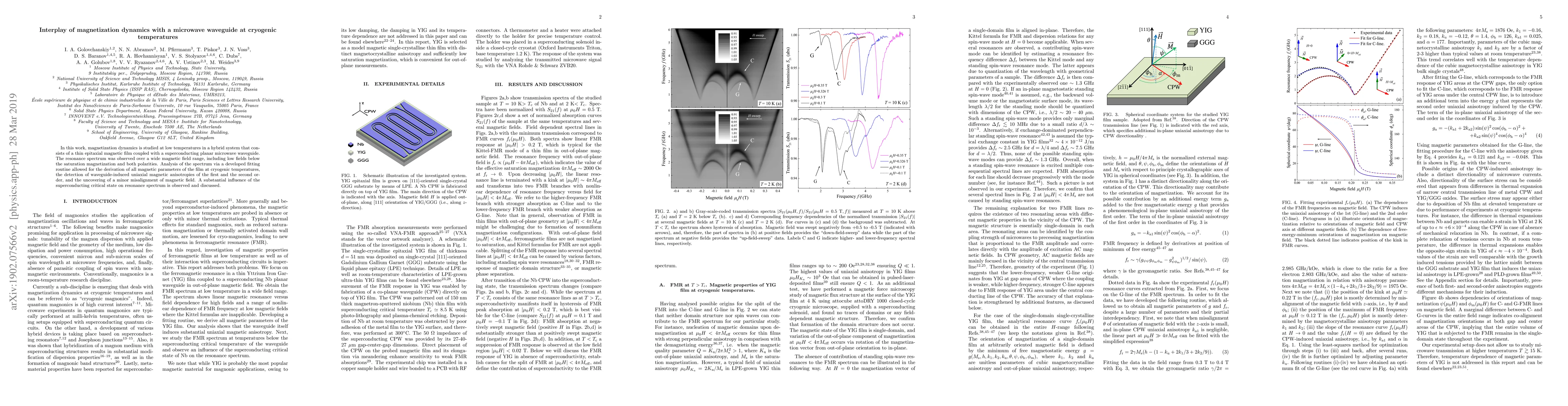 This study investigates magnetization dynamics in a hybrid system of thin magnetic films coupled with superconducting microwave waveguides at cryogenic temperatures. The research reveals resonance spectra influenced by the superconducting critical state, uncovering magnetic parameters, waveguide-induced anisotropies, and minor magnetic field misalignments.