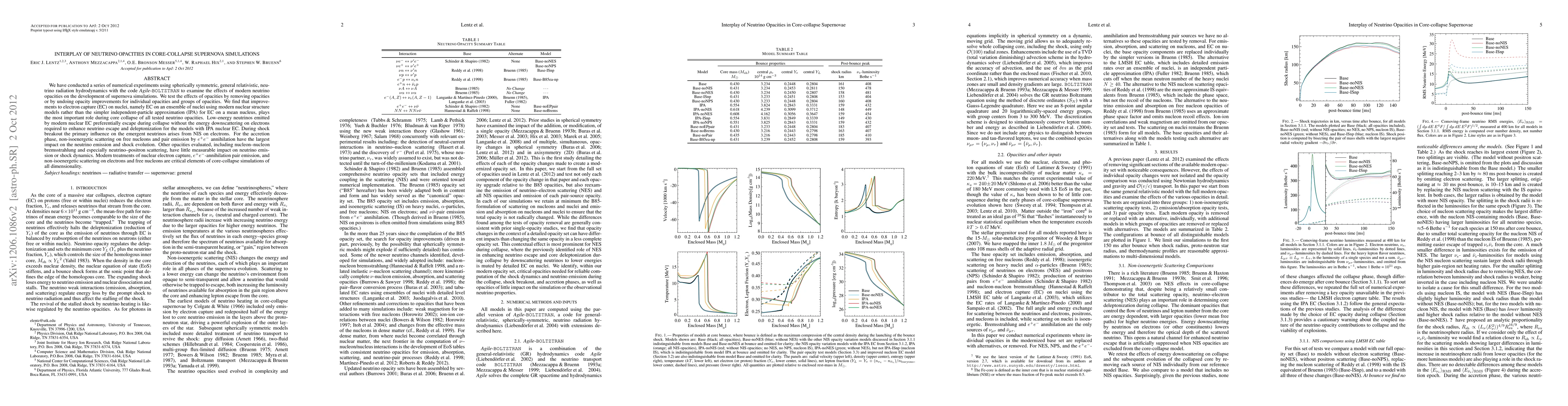 We have conducted a series of numerical experiments using spherically symmetric, general relativistic, neutrino radiation hydrodynamics with the code Agile-BOLTZTRAN to examine the effects of modern neutrino opacities on the development of supernova simulations. We test the effects of opacities by removing opacities or by undoing opacity improvements for individual opacities and groups of opacities. We find that improvements to electron capture (EC) on nuclei, namely EC on an ensemble of nuclei using modern nuclear structure models rather than the simpler independent-particle approximation (IPA) for EC on a mean nucleus, plays the most important role during core collapse of all tested neutrino opacities. Low-energy neutrinos emitted by modern nuclear EC preferentially escape during collapse without the energy downscattering on electrons required to enhance neutrino escape and deleptonization for the models with IPA nuclear EC. During shock breakout the primary influence on the emergent neutrinos arises from NIS on electrons. For the accretion phase, non-isoenergetic scattering on free nucleons and pair emission by $e^+e^-$ annihilation have the largest impact on the neutrino emission and shock evolution. Other opacities evaluated, including nucleon--nucleon bremsstrahlung and especially neutrino--positron scattering, have little measurable impact on neutrino emission or shock dynamics. Modern treatments of nuclear electron capture, $e^+e^-$-annihilation pair emission, and non-isoenergetic scattering on electrons and free nucleons are critical elements of core-collapse simulations of all dimensionality.