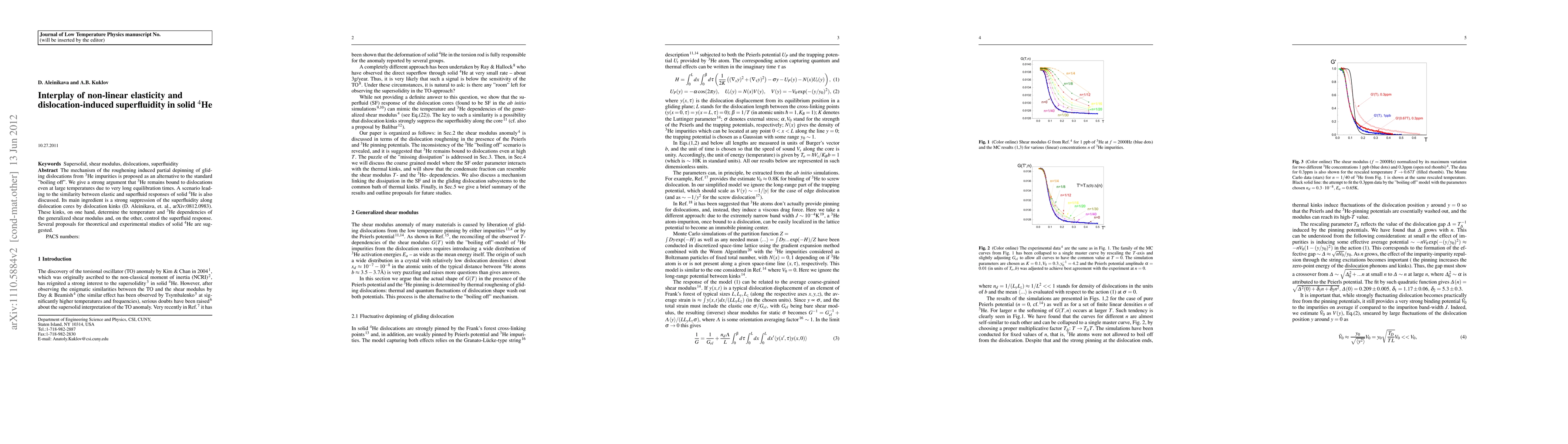This paper proposes a mechanism for the partial depinning of gliding dislocations in solid Helium-4, suggesting that Helium-3 impurities remain bound due to long equilibration times. It also explores the interplay between non-linear elasticity and superfluidity, proposing that dislocation kinks suppress superfluidity and influence both elastic and superfluid responses.