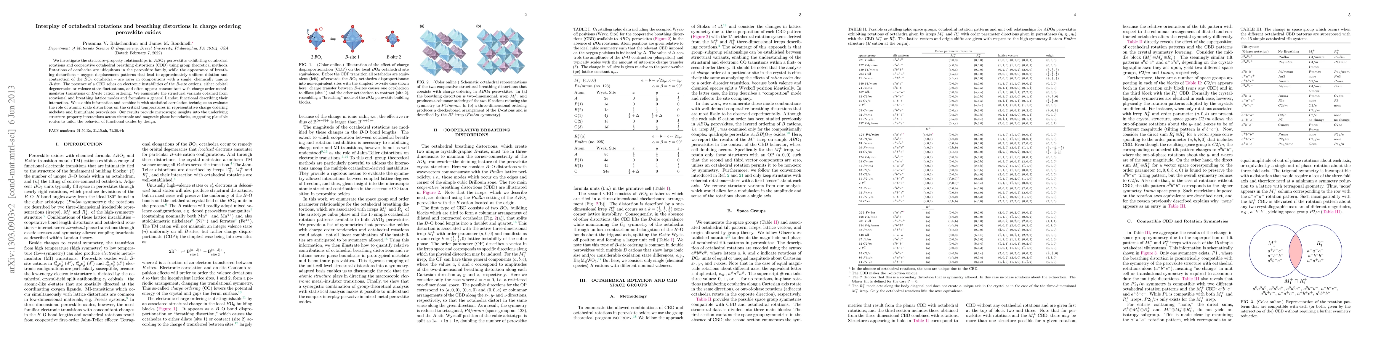 This paper explores the structure-property relationships in perovskite oxides with octahedral rotations and cooperative breathing distortions, using group theory and statistical analysis to understand their role in charge ordering and phase transitions. The study reveals insights into how atomic distortions influence critical temperatures and suggests methods to manipulate the properties of functional oxides.