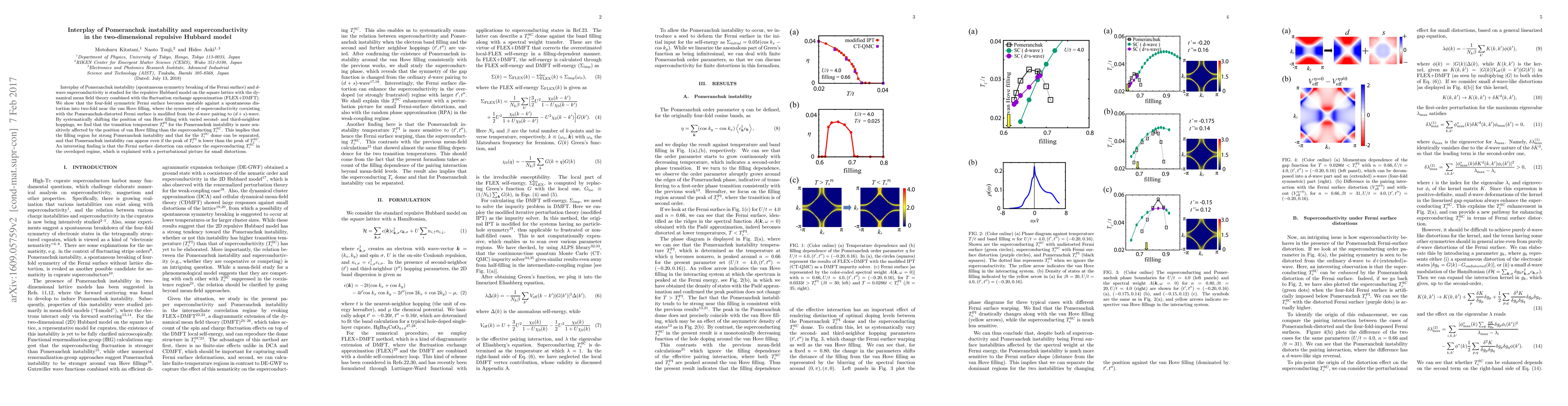 This paper investigates the interaction between Pomeranchuk instability and d-wave superconductivity in the two-dimensional repulsive Hubbard model using FLEX+DMFT. It reveals that the Fermi surface distortion can enhance the superconducting transition temperature, especially in the overdoped regime, suggesting a complex relationship between superconductivity and Pomeranchuk instability.