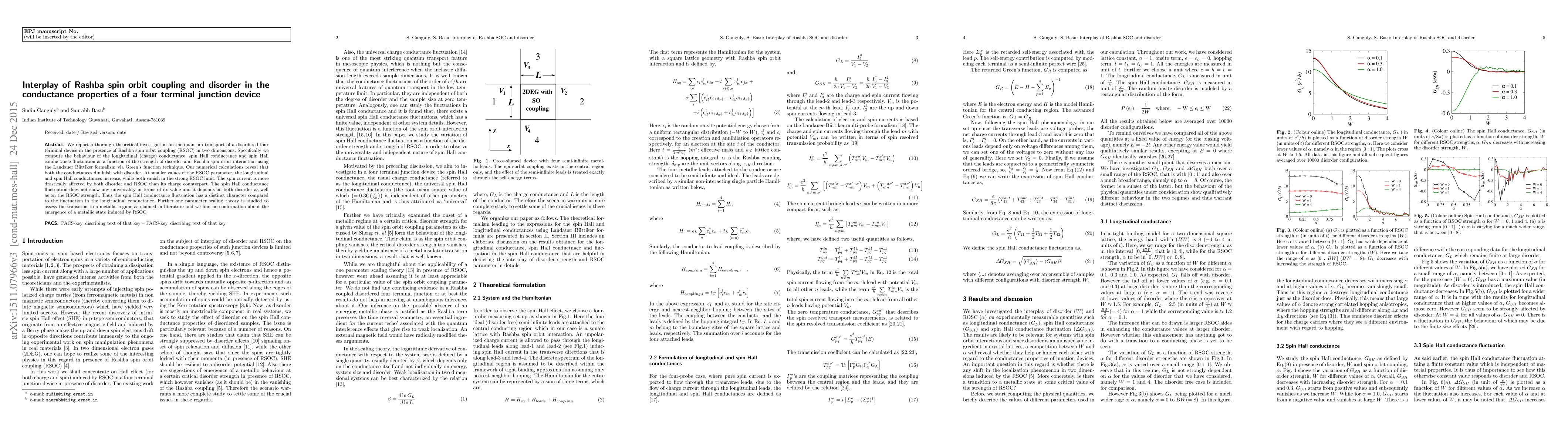 This paper investigates quantum transport in a disordered two-dimensional four-terminal junction with Rashba spin-orbit coupling, revealing that both longitudinal and spin Hall conductances decrease with disorder and vanish at strong RSOC, while spin current is more sensitive to disorder and RSOC. The study finds no evidence of a metallic state induced by RSOC.