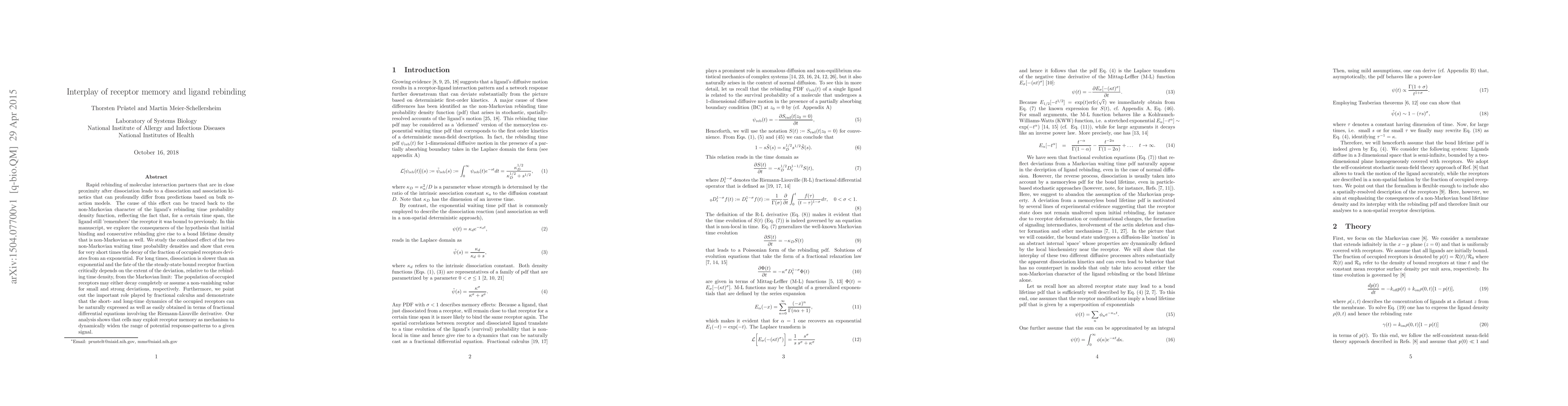 Rapid rebinding of molecular interaction partners that are in close proximity after dissociation leads to a dissociation and association kinetics that can profoundly differ from predictions based on bulk reaction models. The cause of this effect can be traced back to the non-Markovian character of the ligand's rebinding time probability density function, reflecting the fact that, for a certain time span, the ligand still 'remembers' the receptor it was bound to previously. In this manuscript, we explore the consequences of the hypothesis that initial binding and consecutive rebinding give rise to a bond lifetime density that is non-Markovian as well. We study the combined effect of the two non-Markovian waiting time probability densities and show that even for very short times the decay of the fraction of occupied receptors deviates from an exponential. For long times, dissociation is slower than an exponential and the fate of the the steady-state bound receptor fraction critically depends on the extent of the deviation, relative to the rebinding time density, from the Markovian limit: The population of occupied receptors may either decay completely or assume a non-vanishing value for small and strong deviations, respectively. Furthermore, we point out the important role played by fractional calculus and demonstrate that the short- and long-time dynamics of the occupied receptors can be naturally expressed as well as easily obtained in terms of fractional differential equations involving the Riemann-Liouville derivative. Our analysis shows that cells may exploit receptor memory as mechanism to dynamically widen the range of potential response-patterns to a given signal.