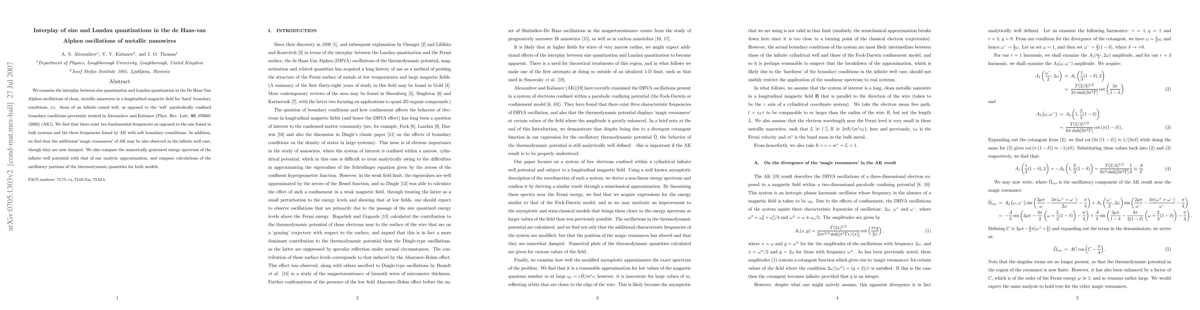 We examine the interplay between size quantization and Landau quantization in the De Haas-Van Alphen oscillations of clean, metallic nanowires in a longitudinal magnetic field for `hard' boundary conditions, i.e. those of an infinite round well, as opposed to the `soft' parabolically confined boundary conditions previously treated in Alexandrov and Kabanov (Phys. Rev. Lett. {\bf 95}, 076601 (2005) (AK)). We find that there exist {\em two} fundamental frequencies as opposed to the one found in bulk systems and the three frequencies found by AK with soft boundary counditions. In addition, we find that the additional `magic resonances' of AK may be also observed in the infinite well case, though they are now damped. We also compare the numerically generated energy spectrum of the infinite well potential with that of our analytic approximation, and compare calculations of the oscillatory portions of the thermodynamic quantities for both models.