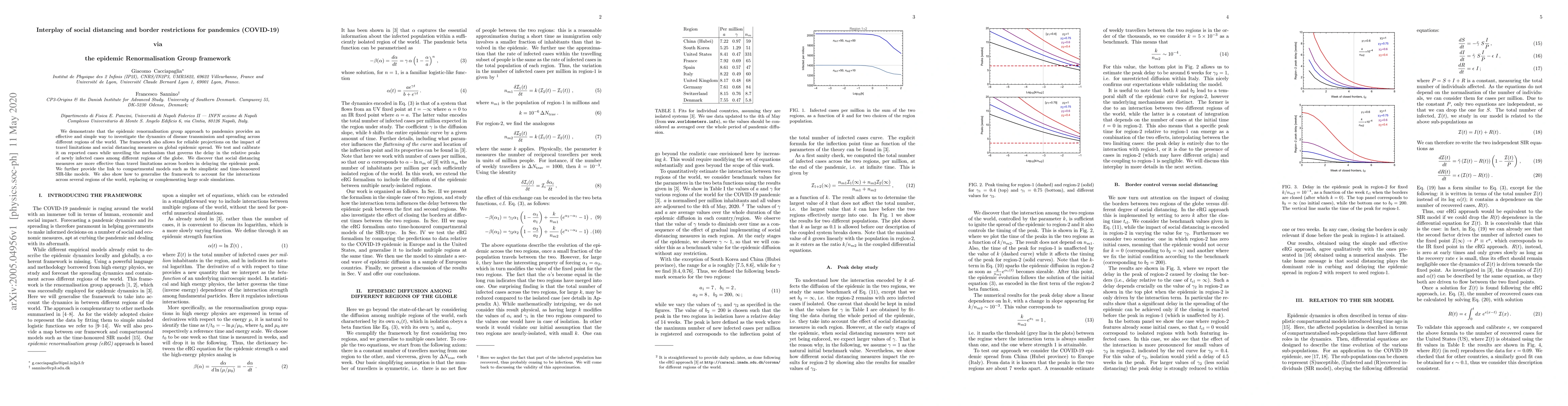 We demonstrate that the epidemic renormalisation group approach to pandemics provides an effective and simple way to investigate the dynamics of disease transmission and spreading across different regions of the world. The framework also allows for reliable projections on the impact of travel limitations and social distancing measures on global epidemic spread. We test and calibrate it on reported cases while unveiling the mechanism that governs the delay in the relative peaks of newly infected cases among different regions of the globe. We discover that social distancing measures are more effective than travel limitations across borders in delaying the epidemic peak. We further provide the link to compartmental models such as the simplistic and time-honoured SIR-like models. We also show how to generalise the framework to account for the interactions across several regions of the world, replacing or complementing large scale simulations.