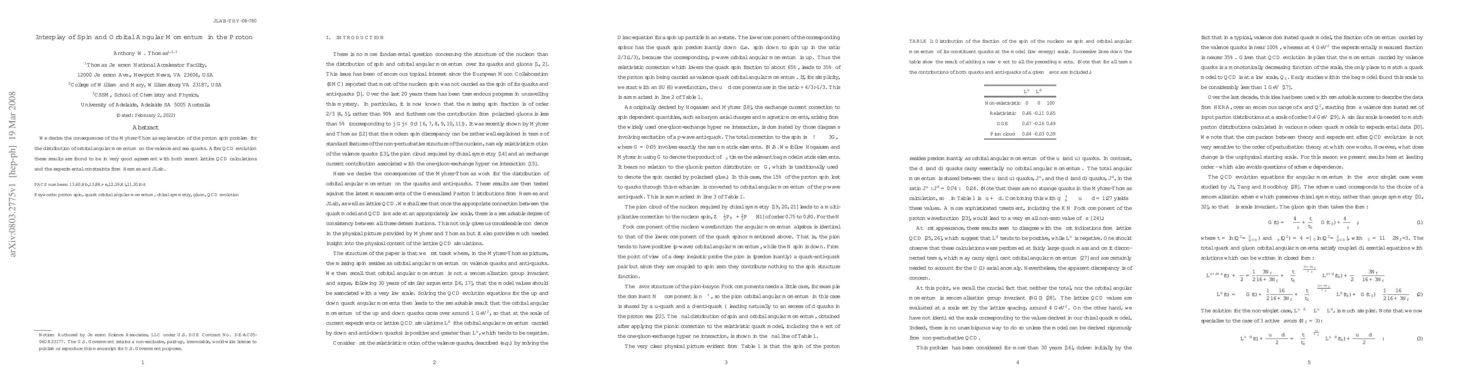 This paper explores the implications of the Myhrer-Thomas theory on proton spin, revealing how it affects the distribution of orbital angular momentum among valence and sea quarks. The findings align well with recent lattice QCD results and experimental data from Hermes and JLab.