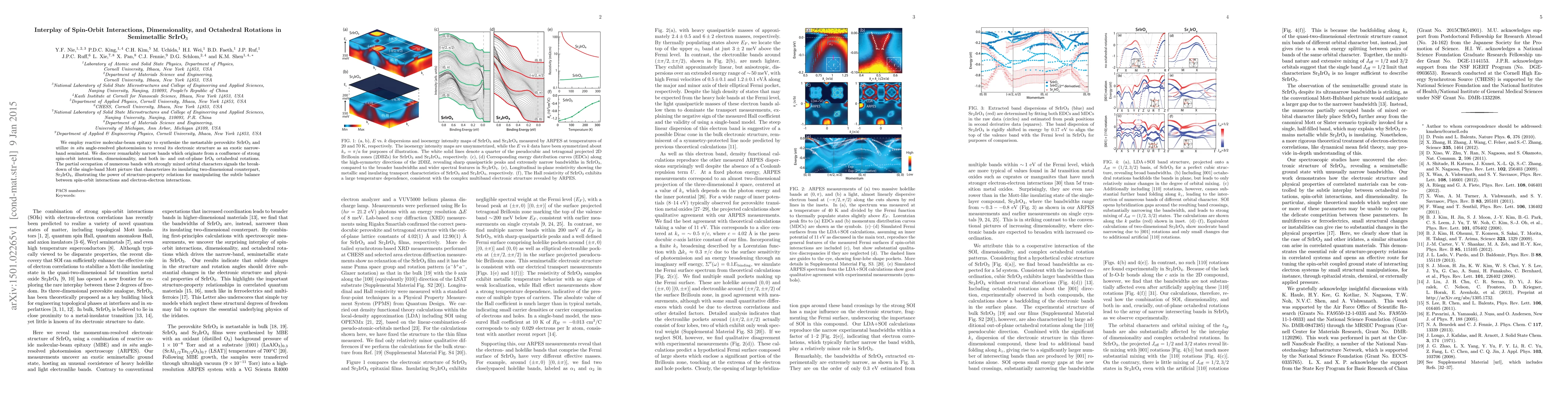 This study synthesizes metastable SrIrO$_3$ using reactive molecular-beam epitaxy and reveals its narrow-band semimetal nature via in situ angle-resolved photoemission. The paper finds that the electronic structure is influenced by strong spin-orbit interactions, dimensionality, and octahedral rotations, challenging the single-band Mott picture of its 2D counterpart.