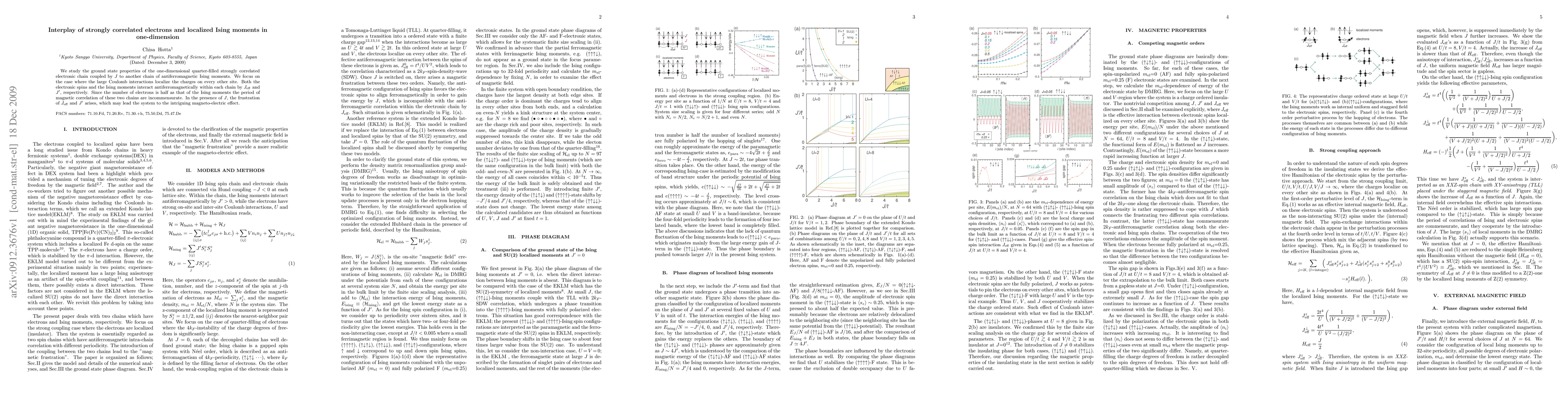 We study the ground state properties of the one-dimensional quarter-filled strongly correlated electronic chain coupled by $J$ to another chain of antiferromagnetic Ising moments. We focus on the case where the large Coulomb interactions localize the charges on every other site. Both the electronic spins and the Ising moments interact antiferromagnetically within each chain by $J_{\rm eff}$ and $J'$, respectively. Since the number of electrons is half as that of the Ising moments the period of magnetic correlation of these two chains are incommensurate. In the presence of $J$, the frustration of $J_{\rm eff}$ and $J'$ arises, which may lead the system to the intriguing magneto-electric effect.
