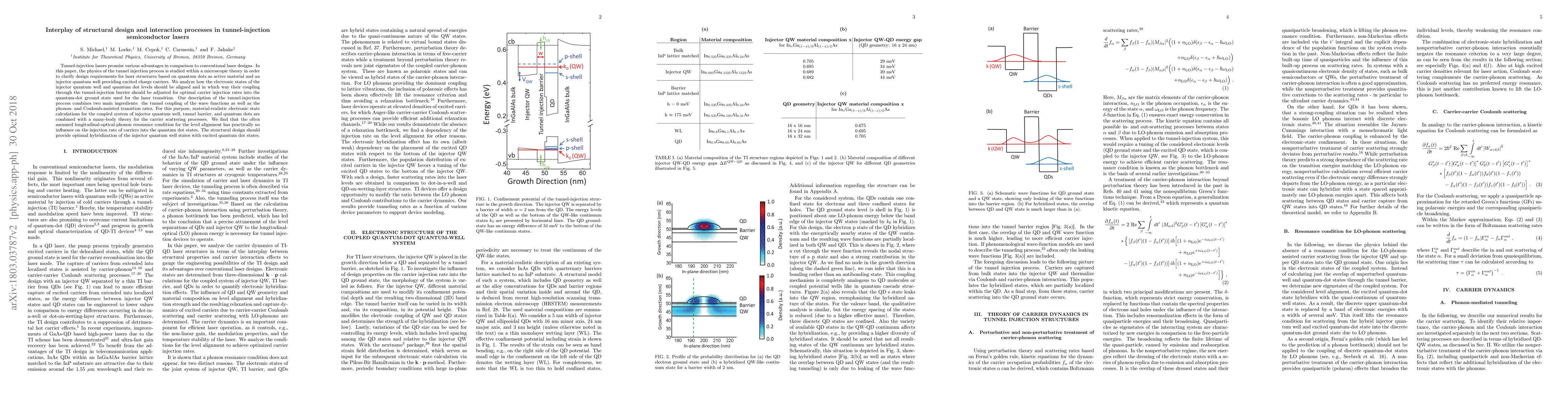 The paper presents a comprehensive theoretical analysis of carrier dynamics in tunnel-injection quantum-dot lasers, incorporating both perturbative and non-perturbative treatments of carrier-phonon and Coulomb interactions.