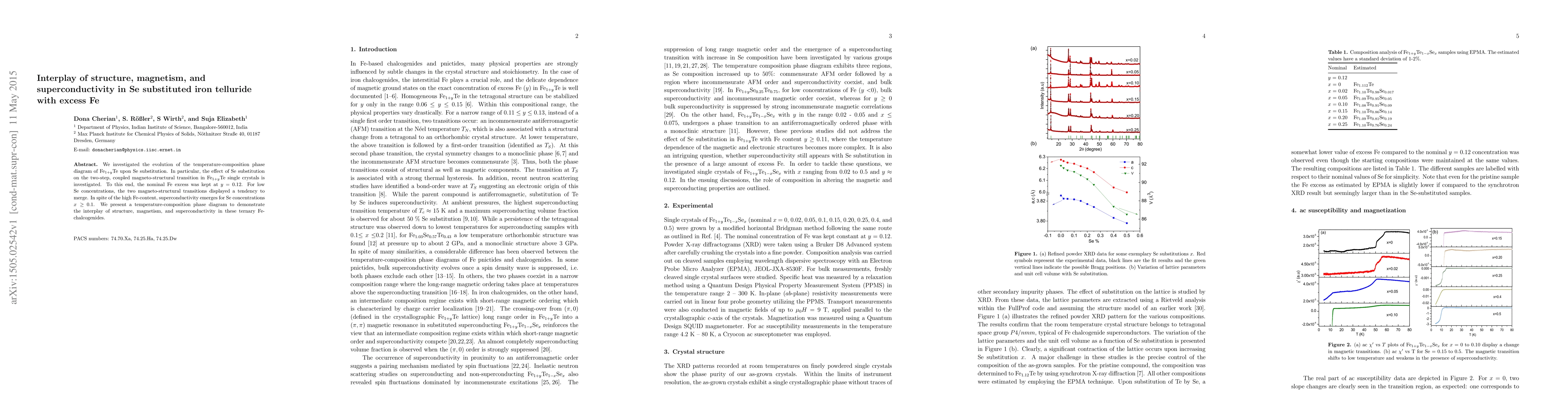 This study investigates how selenium substitution in Fe$_{1+y}$Te affects its magneto-structural transitions and induces superconductivity at high selenium concentrations, despite maintaining a nominal iron excess of $y = 0.12$. The research reveals a merging of magneto-structural transitions and the emergence of superconductivity for $x \geq$ 0.1.