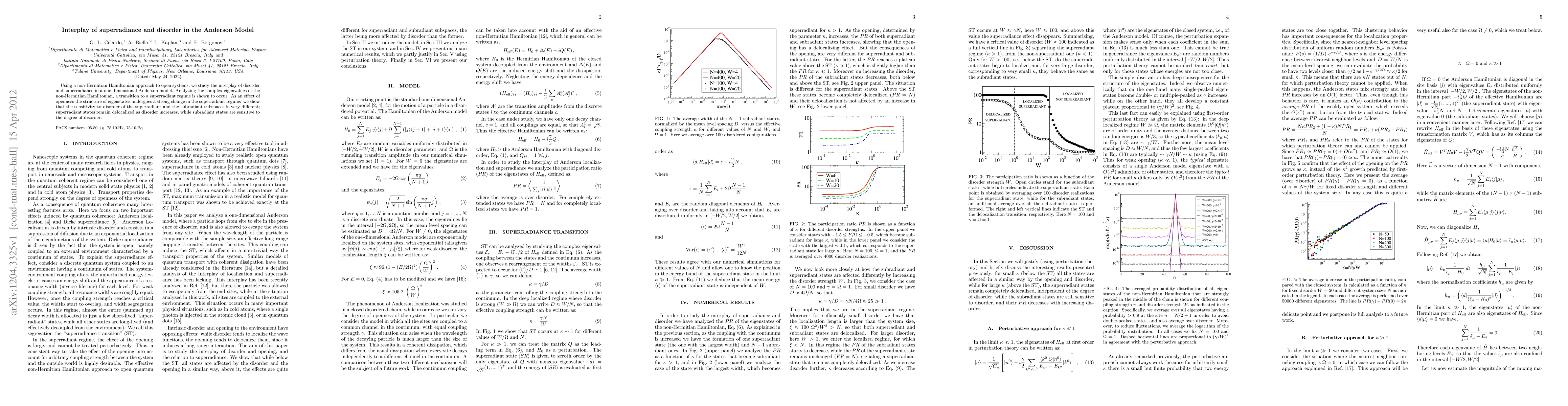This paper investigates the interaction between disorder and superradiance in a one-dimensional Anderson model using a non-Hermitian Hamiltonian approach. It reveals a transition to a superradiant regime and demonstrates that superradiant states remain delocalized despite increasing disorder, contrasting with the sensitivity of subradiant states to disorder.
