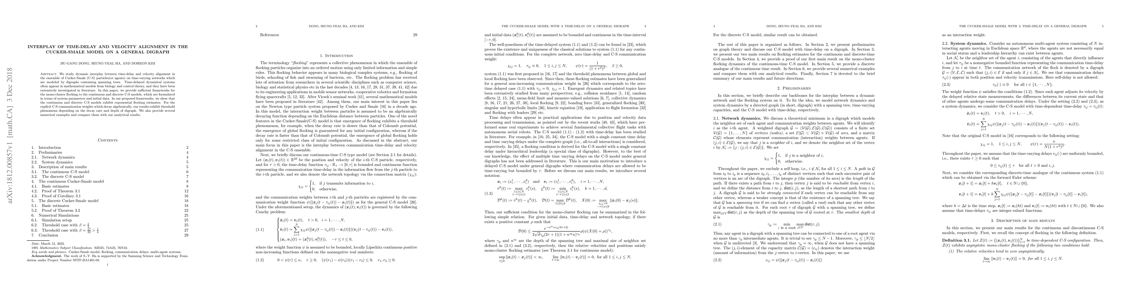 This paper investigates how time-delay and velocity alignment affect flocking behavior in a model of particles on networks, finding that the continuous and discrete models exhibit exponential flocking estimates with threshold phenomena depending on system parameters.