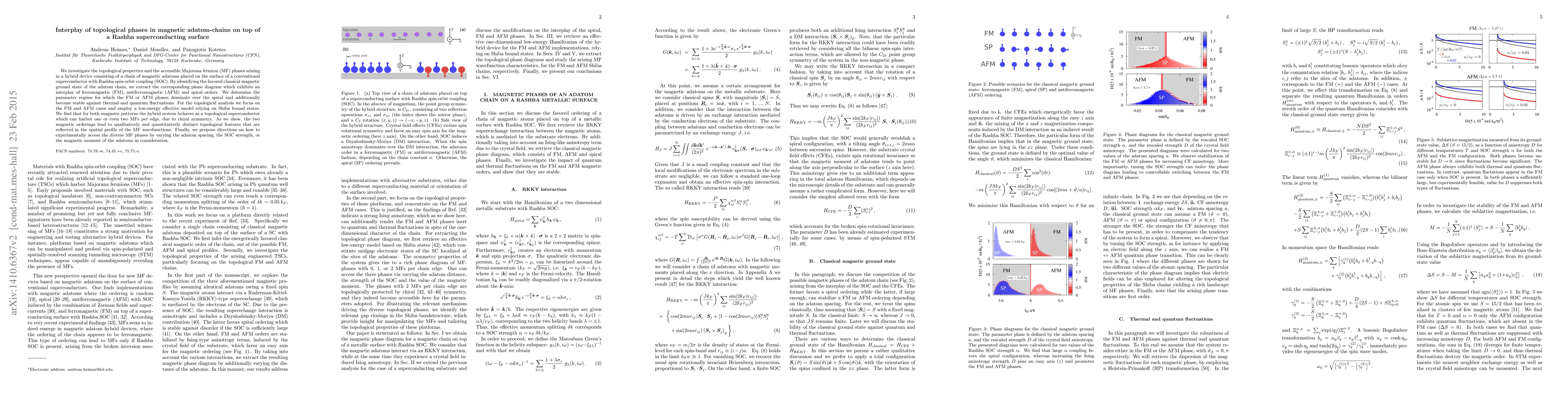We investigate the topological properties and the accessible Majorana fermion (MF) phases arising in a hybrid device consisting of a chain of magnetic adatoms placed on the surface of a conventional superconductor with Rashba spin-orbit coupling (SOC). By identifying the favored classical magnetic ground state of the adatom chain, we extract the corresponding phase diagram which exhibits an interplay of ferromagnetic (FM), antiferromagnetic (AFM) and spiral orders. We determine the parameter regime for which the FM or AFM phases dominate over the spiral and additionally become stable against thermal and quantum fluctuations. For the topological analysis we focus on the FM and AFM cases and employ a low-energy effective model relying on Shiba bound states. We find that for both magnetic patterns the hybrid system behaves as a topological superconductor which can harbor one or even two MFs per edge, due to chiral symmetry. As we show, the two magnetic orderings lead to qualitatively and quantitatively distinct topological features that are reflected in the spatial profile of the MF wavefunctions. Finally, we propose directions on how to experimentally access the diverse MF phases by varying the adatom spacing, the SOC strength, or the magnetic moment of the adatoms in consideration.