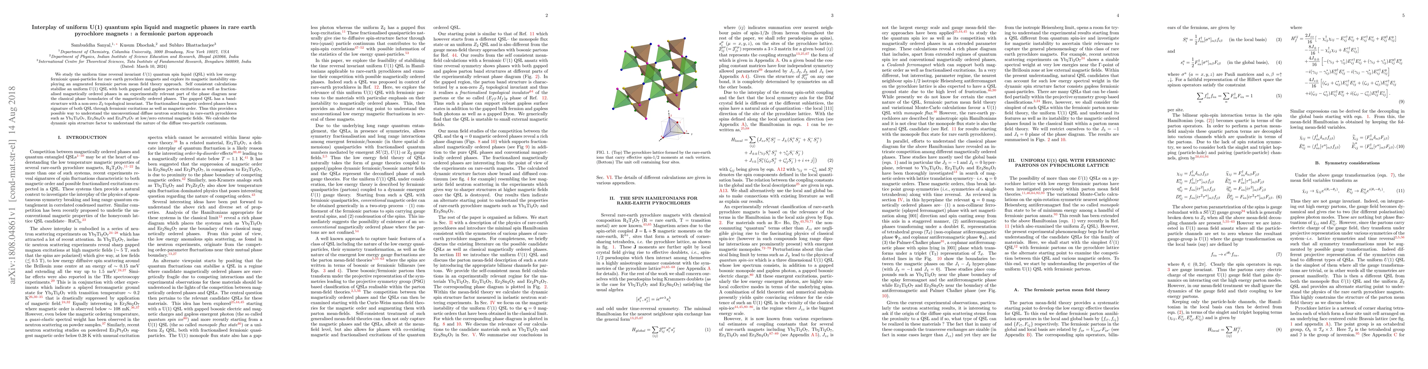 This paper investigates the uniform $U(1)$ quantum spin liquid in rare earth pyrochlore magnets using a fermionic parton approach, revealing its magnetic instability and the presence of both gapped and gapless quasi-particles. It finds a stable $U(1)$ QSL with fractionalised magnetically ordered phases, providing insights into the unconventional neutron scattering in materials like Yb$_2$Ti$_2$O$_7$.