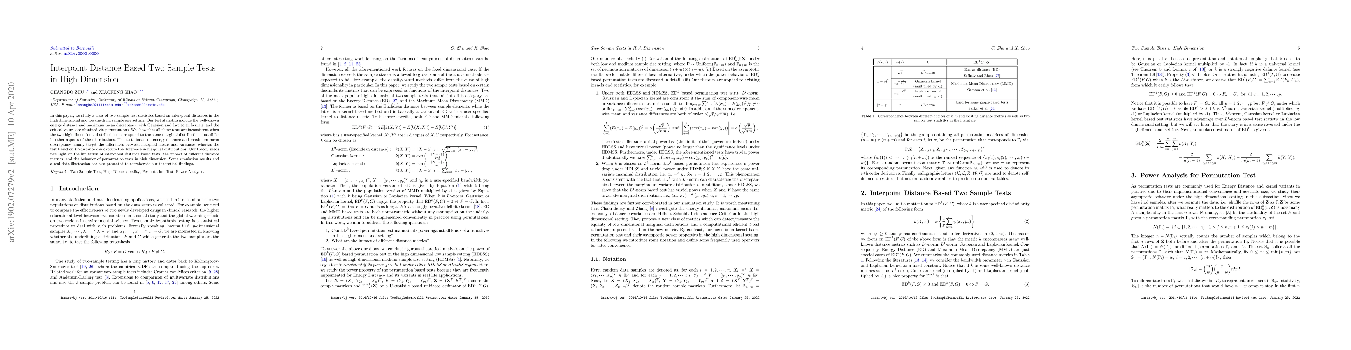 This paper explores two-sample test statistics based on inter-point distances in high dimensions, focusing on energy distance, maximum mean discrepancy, and $L^1$-distance. It demonstrates the inconsistency of these tests when marginal distributions are identical but differ in other aspects, highlighting the limitations of these metrics and the behavior of permutation tests in high-dimensional settings.