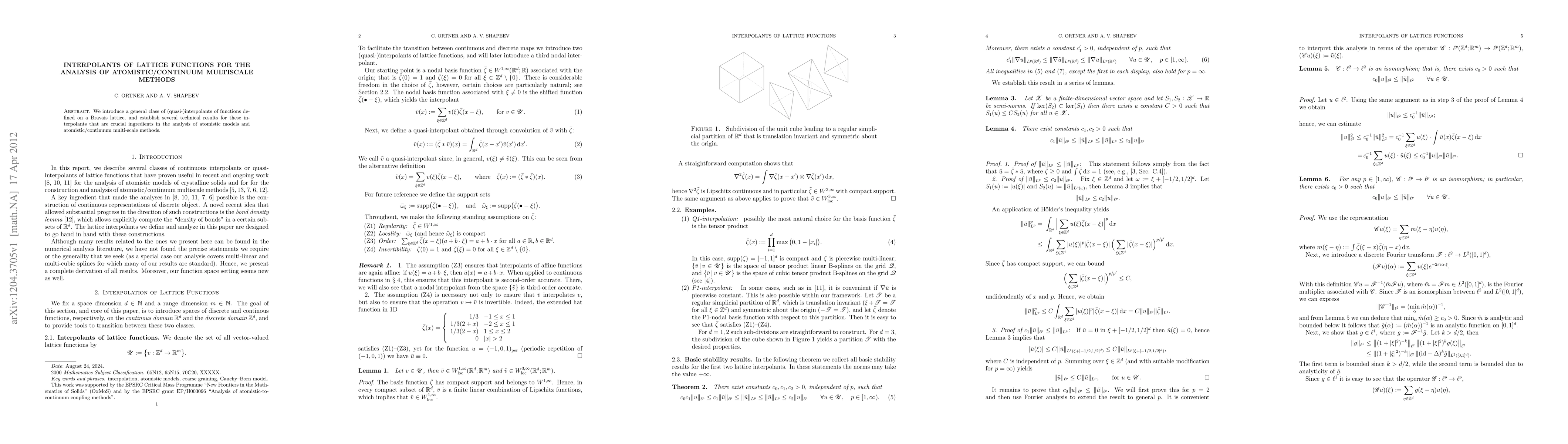 Two-line summary: This paper introduces a new class of interpolants for lattice functions, providing essential technical results that support the analysis of atomistic models and multiscale methods combining atomistic and continuum approaches. These interpolants are crucial for bridging the gap between different scales in computational simulations.