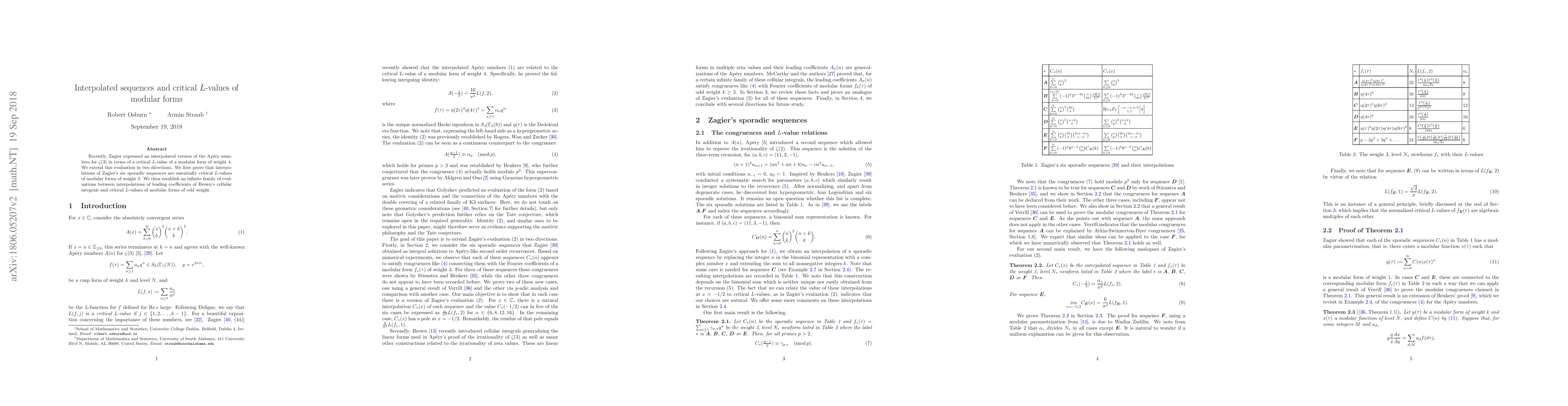 Recently, Zagier expressed an interpolated version of the Ap\'ery numbers for $\zeta(3)$ in terms of a critical $L$-value of a modular form of weight 4. We extend this evaluation in two directions. We first prove that interpolations of Zagier's six sporadic sequences are essentially critical $L$-values of modular forms of weight 3. We then establish an infinite family of evaluations between interpolations of leading coefficients of Brown's cellular integrals and critical $L$-values of modular forms of odd weight.
