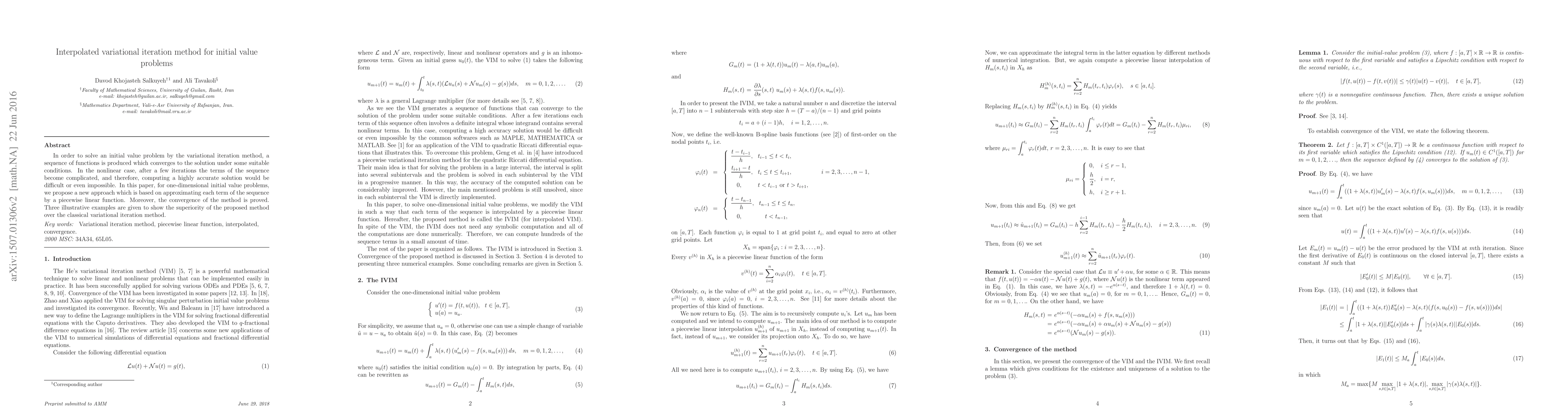 A new method for solving initial value problems using variational iteration is proposed, which approximates terms with piecewise linear functions, improving accuracy over classical methods.