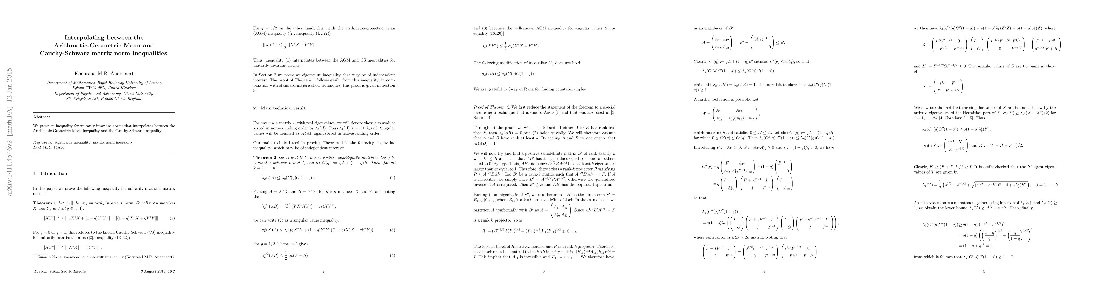 This paper proves a new inequality that interpolates between two well-known mathematical inequalities, providing a bridge between unitarily invariant norms.