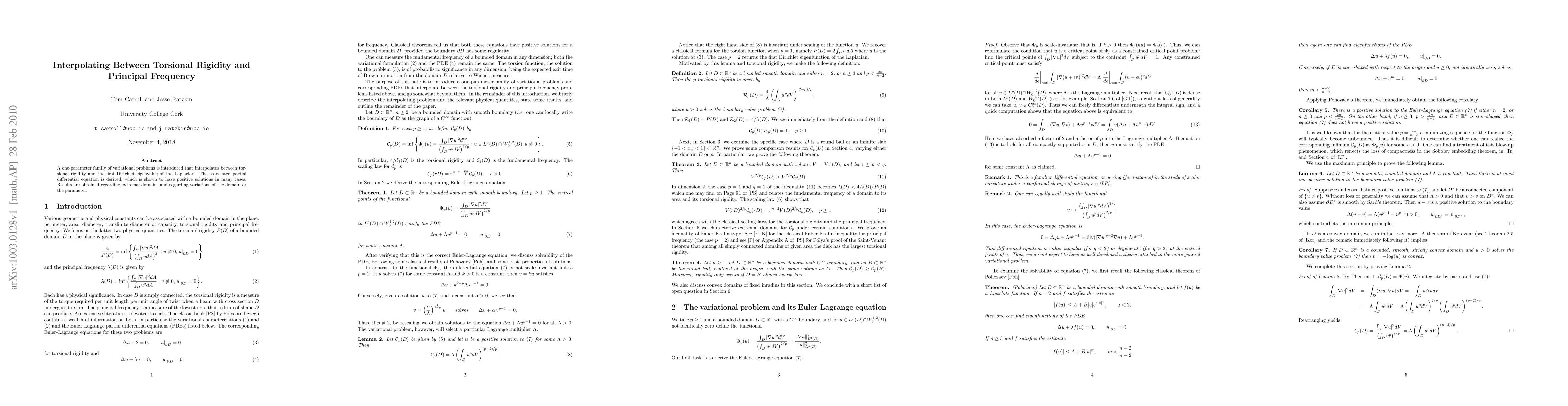 A one-parameter family of variational problems is introduced that interpolates between torsional rigidity and the first Dirichlet eigenvalue of the Laplacian. The associated partial differential equation is derived, which is shown to have positive solutions in many cases. Results are obtained regarding extremal domains and regarding variations of the domain or the parameter.