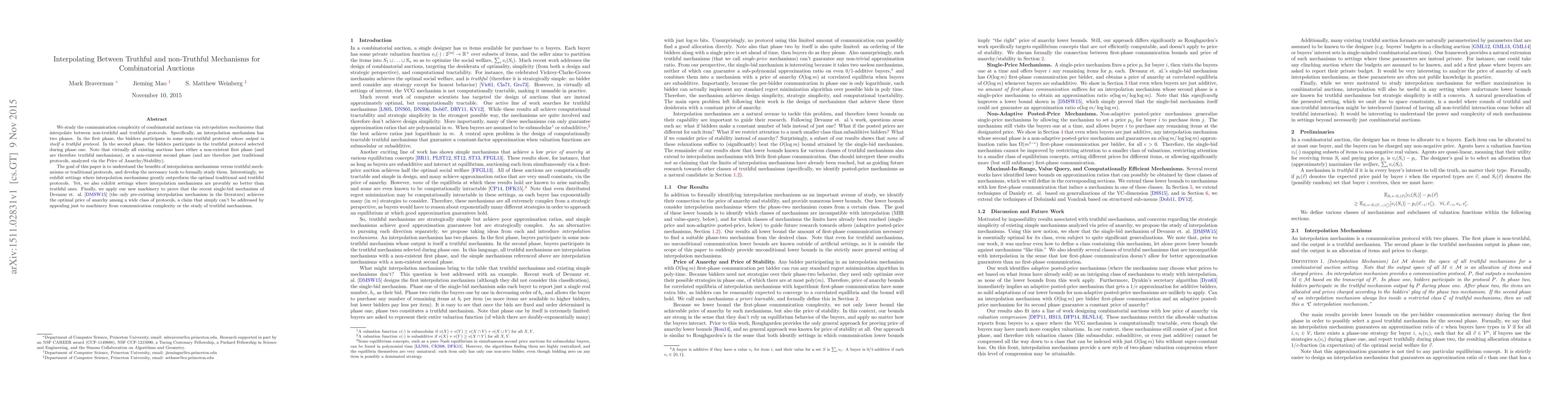 We study the communication complexity of combinatorial auctions via interpolation mechanisms that interpolate between non-truthful and truthful protocols. Specifically, an interpolation mechanism has two phases. In the first phase, the bidders participate in some non-truthful protocol whose output is itself a truthful protocol. In the second phase, the bidders participate in the truthful protocol selected during phase one. Note that virtually all existing auctions have either a non-existent first phase (and are therefore truthful mechanisms), or a non-existent second phase (and are therefore just traditional protocols, analyzed via the Price of Anarchy/Stability). The goal of this paper is to understand the benefits of interpolation mechanisms versus truthful mechanisms or traditional protocols, and develop the necessary tools to formally study them. Interestingly, we exhibit settings where interpolation mechanisms greatly outperform the optimal traditional and truthful protocols. Yet, we also exhibit settings where interpolation mechanisms are provably no better than truthful ones. Finally, we apply our new machinery to prove that the recent single-bid mechanism of Devanur et. al.~\cite{DevanurMSW15} (the only pre-existing interpolation mechanism in the literature) achieves the optimal price of anarchy among a wide class of protocols, a claim that simply can't be addressed by appealing just to machinery from communication complexity or the study of truthful mechanisms.