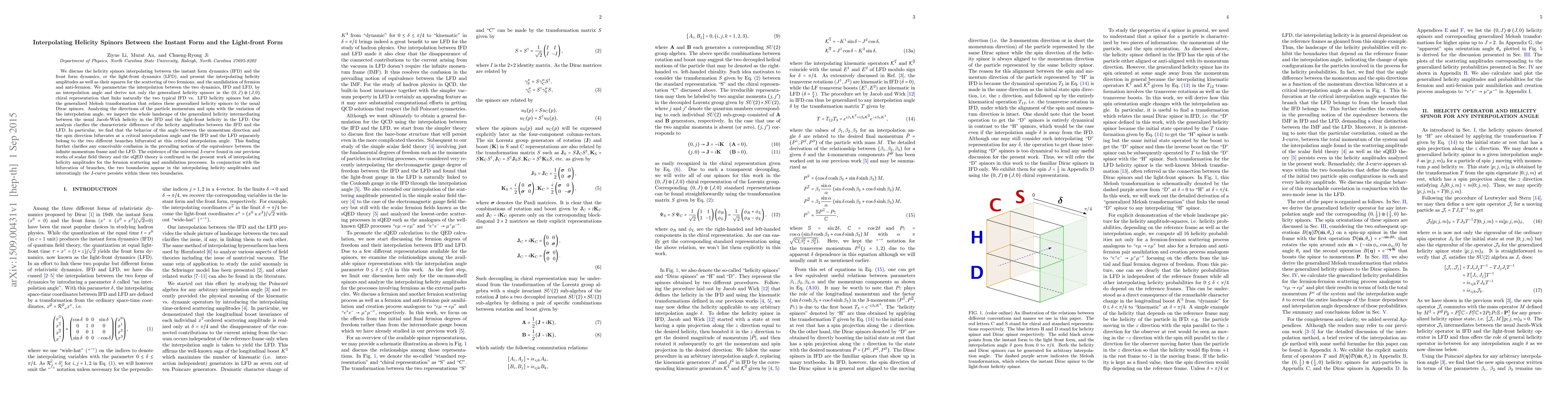 This paper explores the interpolating helicity spinors between the instant form dynamics and light-front dynamics, presenting generalized helicity amplitudes and their squares for fermion scattering and annihilation. It reveals a bifurcation in the helicity angle behavior at a critical interpolation angle, clarifying the distinct differences between the two dynamics and confirming the persistence of the universal J-curve within specific boundaries.