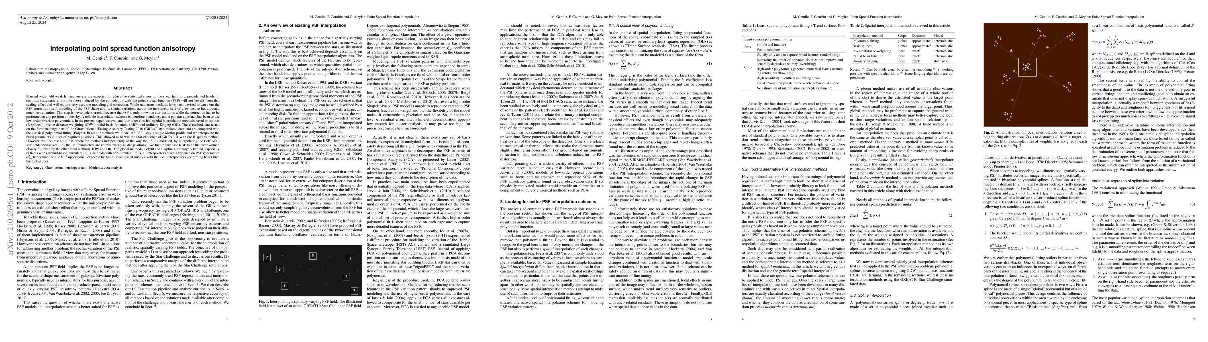 Planned wide-field weak lensing surveys are expected to reduce the statistical errors on the shear field to unprecedented levels. In contrast, systematic errors like those induced by the convolution with the point spread function (PSF) will not benefit from that scaling effect and will require very accurate modeling and correction. While numerous methods have been devised to carry out the PSF correction itself, modeling of the PSF shape and its spatial variations across the instrument field of view has, so far, attracted much less attention. This step is nevertheless crucial because the PSF is only known at star positions while the correction has to be performed at any position on the sky. A reliable interpolation scheme is therefore mandatory and a popular approach has been to use low-order bivariate polynomials. In the present paper, we evaluate four other classical spatial interpolation methods based on splines (B-splines), inverse distance weighting (IDW), radial basis functions (RBF) and ordinary Kriging (OK). These methods are tested on the Star-challenge part of the GRavitational lEnsing Accuracy Testing 2010 (GREAT10) simulated data and are compared with the classical polynomial fitting (Polyfit). We also test all our interpolation methods independently of the way the PSF is modeled, by interpolating the GREAT10 star fields themselves (i.e., the PSF parameters are known exactly at star positions). We find in that case RBF to be the clear winner, closely followed by the other local methods, IDW and OK. The global methods, Polyfit and B-splines, are largely behind, especially in fields with (ground-based) turbulent PSFs. In fields with non-turbulent PSFs, all interpolators reach a variance on PSF systematics $\sigma_{sys}^2$ better than the $1\times10^{-7}$ upper bound expected by future space-based surveys, with the local interpolators performing better than the global ones.
