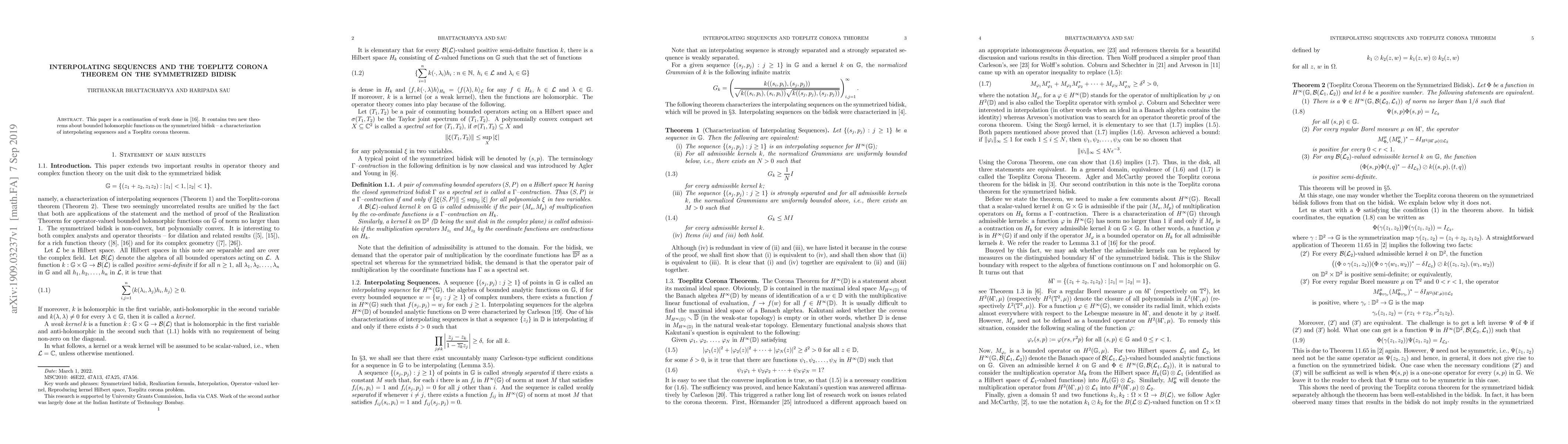 Summary: This paper extends previous research by introducing two new theorems regarding bounded holomorphic functions on the symmetrized bidisk: a characterization of interpolating sequences and a Toeplitz corona theorem.