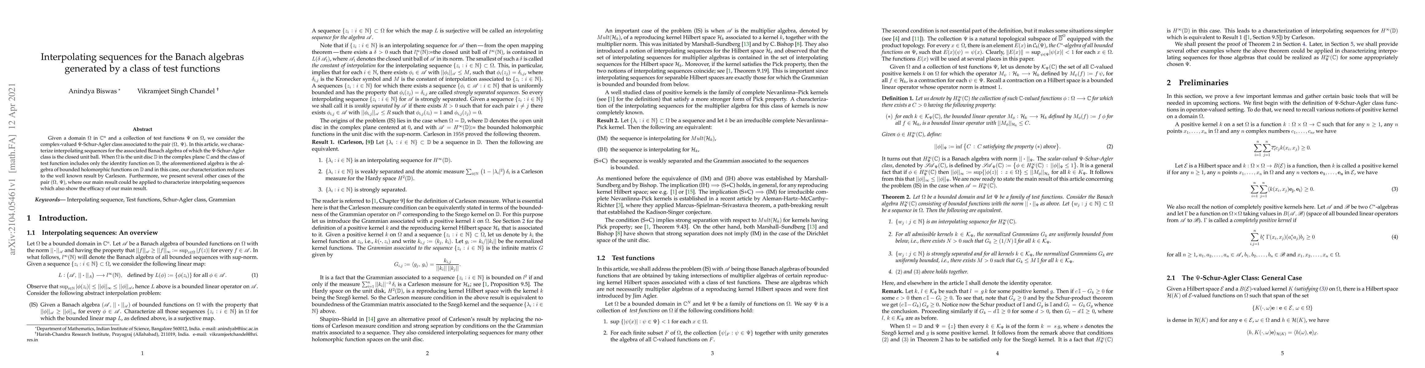 Given a domain $\Omega$ in $\mathbb{C}^n$ and a collection of test functions $\Psi$ on $\Omega$, we consider the complex-valued $\Psi$-Schur-Agler class associated to the pair $(\Omega,\,\Psi)$. In this article, we characterize interpolating sequences for the associated Banach algebra of which the $\Psi$-Schur-Agler class is the closed unit ball. When $\Omega$ is the unit disc $\mathbb{D}$ in the complex plane $\mathbb{C}$ and the class of test function includes only the identity function on $\mathbb{D}$, the aforementioned algebra is the algebra of bounded holomorphic functions on $\mathbb{D}$ and in this case, our characterization reduces to the well known result by Carleson. Furthermore, we present several other cases of the pair $(\Omega,\,\Psi)$, where our main result could be applied to characterize interpolating sequences which also show the efficacy of our main result.