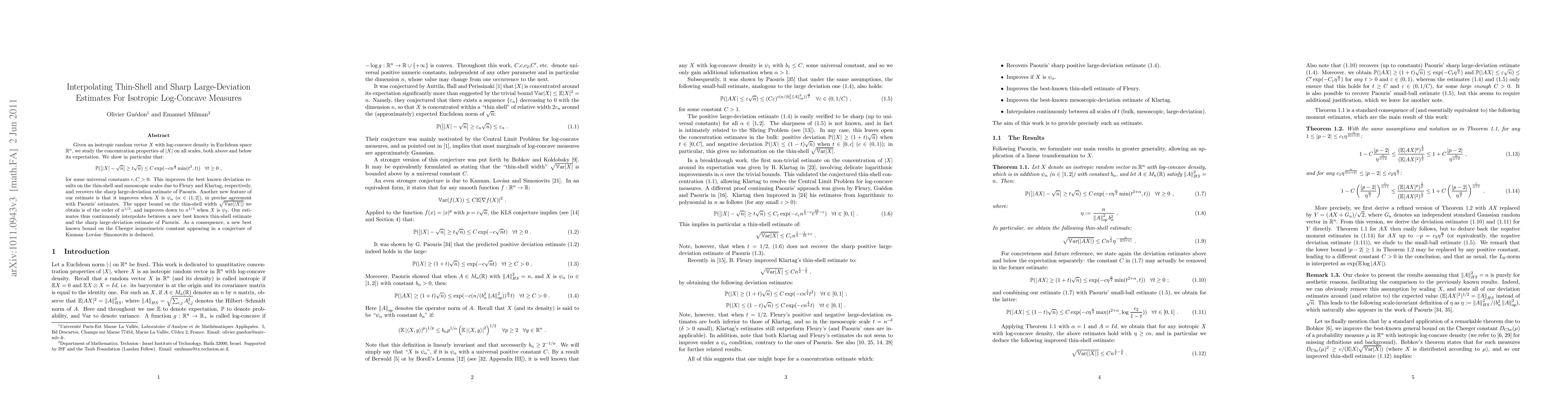 This research paper improves upon existing estimates for concentration properties of an isotropic random vector with log-concave density, interpolating between thin-shell and sharp large-deviation bounds on scale.