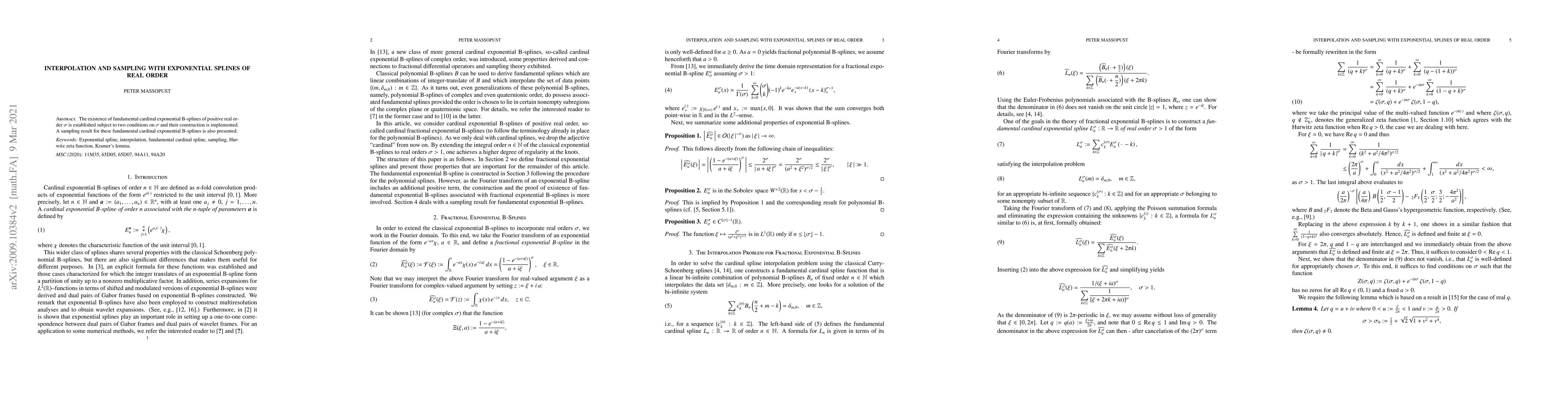 This paper establishes the existence of fundamental cardinal exponential B-splines of positive real order $\sigma$ under specific conditions and provides their construction. It also presents a sampling result for these newly constructed exponential B-splines.