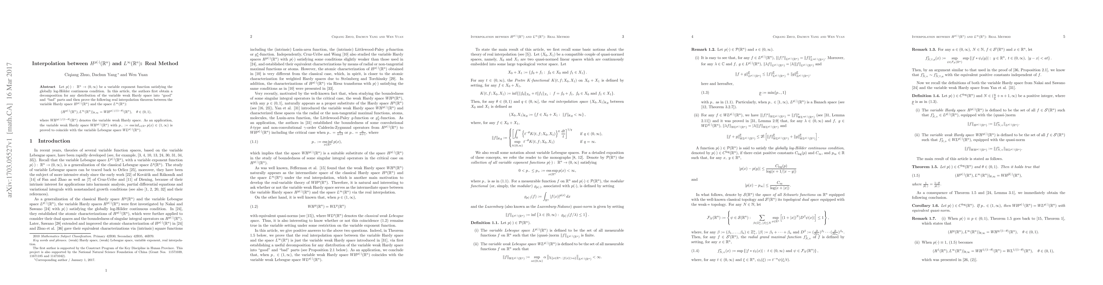 This paper investigates the real interpolation between the variable Hardy space $H^{p(\cdot)}(\mathbb R^n)$ and the space $L^\infty(\mathbb R^n)$, using a decomposition of distributions into "good" and "bad" parts. The authors establish an interpolation theorem and prove that $W\!H^{p(\cdot)/(1-\theta)}(\mathbb R^n)$ coincides with $(H^{p(\cdot)}(\mathbb R^n),L^{\infty}(\mathbb R^n))_{\theta,\infty}$, where $W\!H$ denotes the variable weak Hardy space.